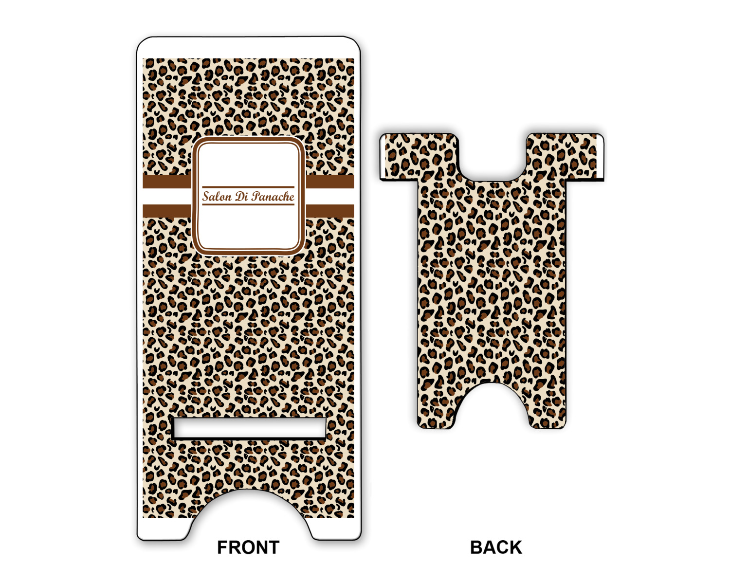 These cell phone holders are comprised of two hardboard pieces, that lock into and steady one another. The bottom part of the mobile phone stand is spacious enough to support both your phone and your charger, while it is not in use. We print your customization atop the face of this stand, while the remaining sides are a sophisticated, black color.