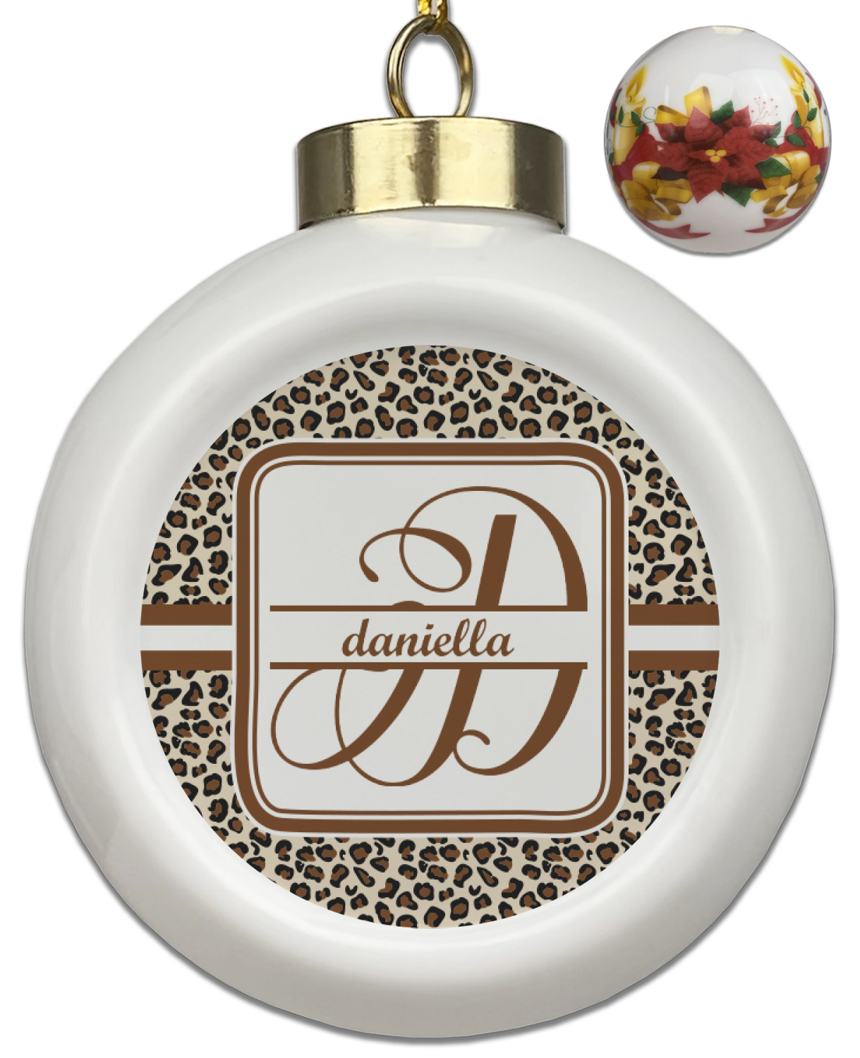 Our Christmas ornaments are a unique ceramic ball shape with a twist as it has a flat face to display your custom design! Select from one of our two design types - Christmas Tree or Poinsettia Garland - to adorn the curved back of your personal design. Each ornament measures 3H x 2.5W x 2D accompanied with a gold string accent for finishing touches to hang on your beautiful Christmas tree!