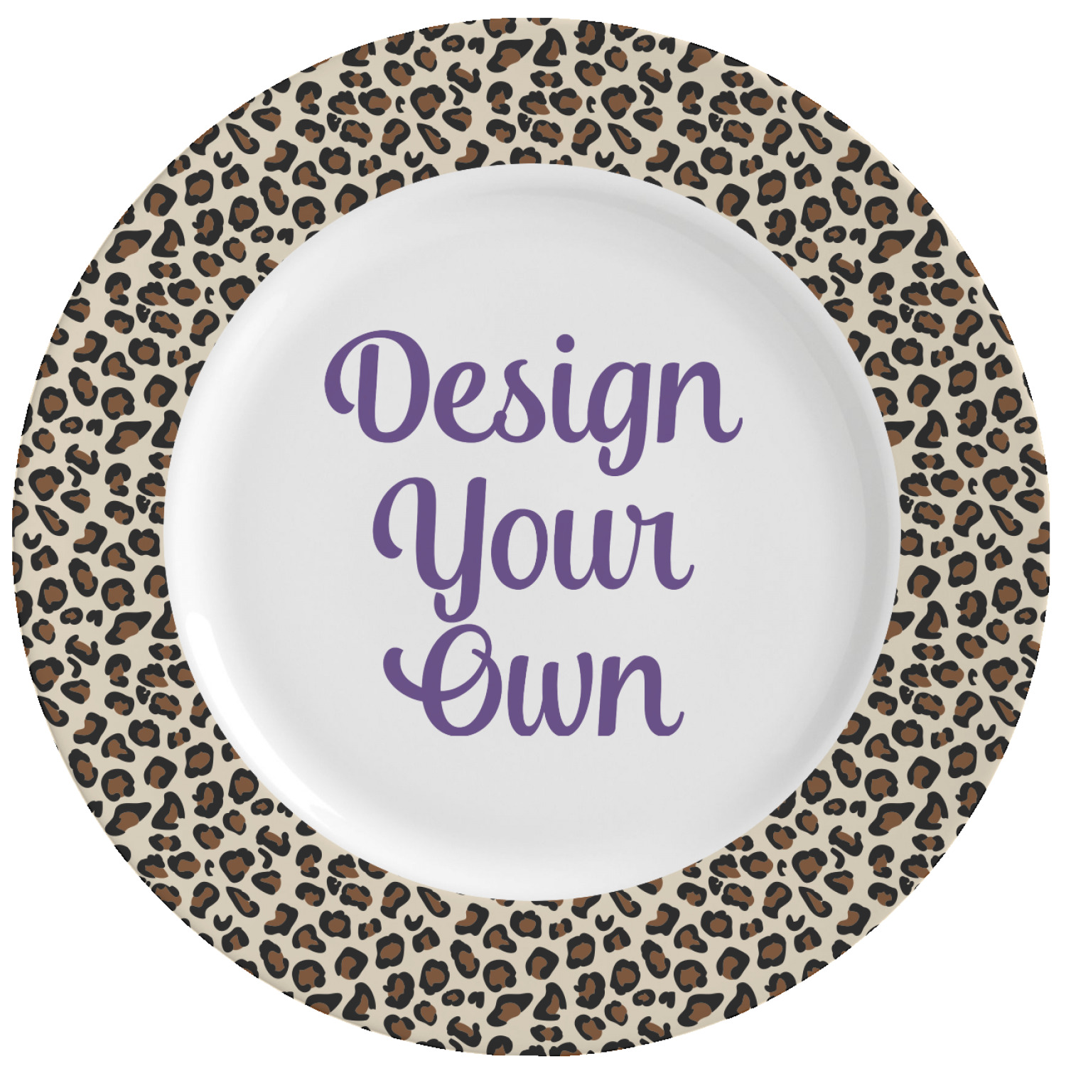 With this custom dinner plate, your have the option of personalizing the rim with an attractive pattern, and then displaying a name, graphic, or text in the center of the plate, against a white background. The exterior of this plate is also the same classic, white color. A glaze coats your plate, making your vividly colored design seem even more vibrant.