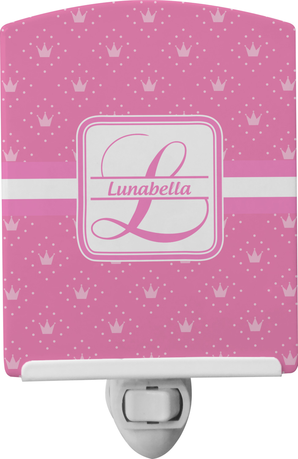 This baby night light is made of durable, ceramic plate that displays your customized design beneath a glossy finish. When this light is turned on, your personalization glows in the dark and offers a bit of light to any room or hallway. The plate also rotates easily. This plug-in night light has a white base with a convenient on and off switch. Additionally, the rotating plug allows you to plug them into US sockets horizontally or vertically. If your child outgrows the design years into the future, you can easily unscrew the plate and use it as a plain nightlight. With your purchase of this outlet night light, we include a 7-watt bulb.