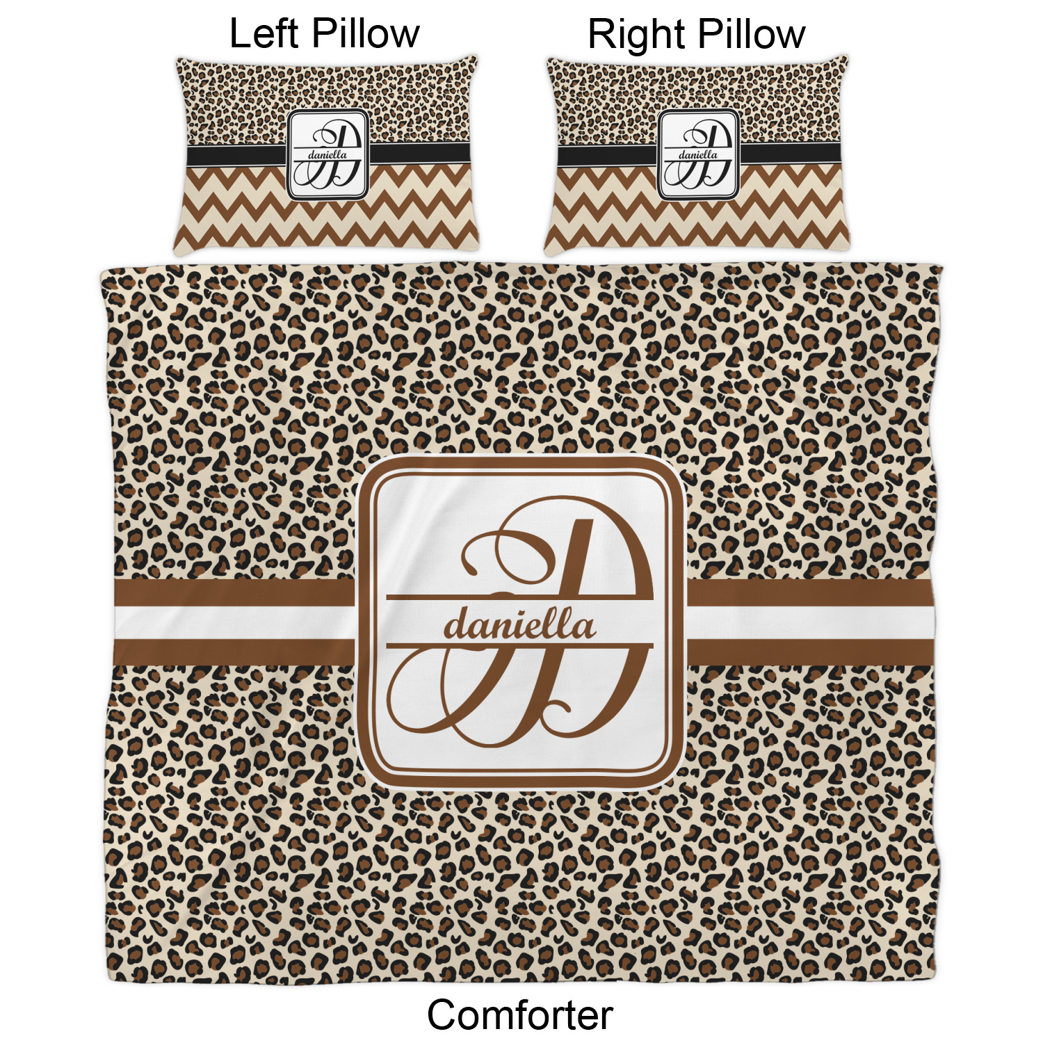 We have hundreds of different design templates for you to choose from Each design can be customized to your exact specifications. Not only can you customize the comforter, but you can also customize each pillow sham e.g. for a queen comforter set you have have Mr & Mrs pillow shams with the last name on comforter.