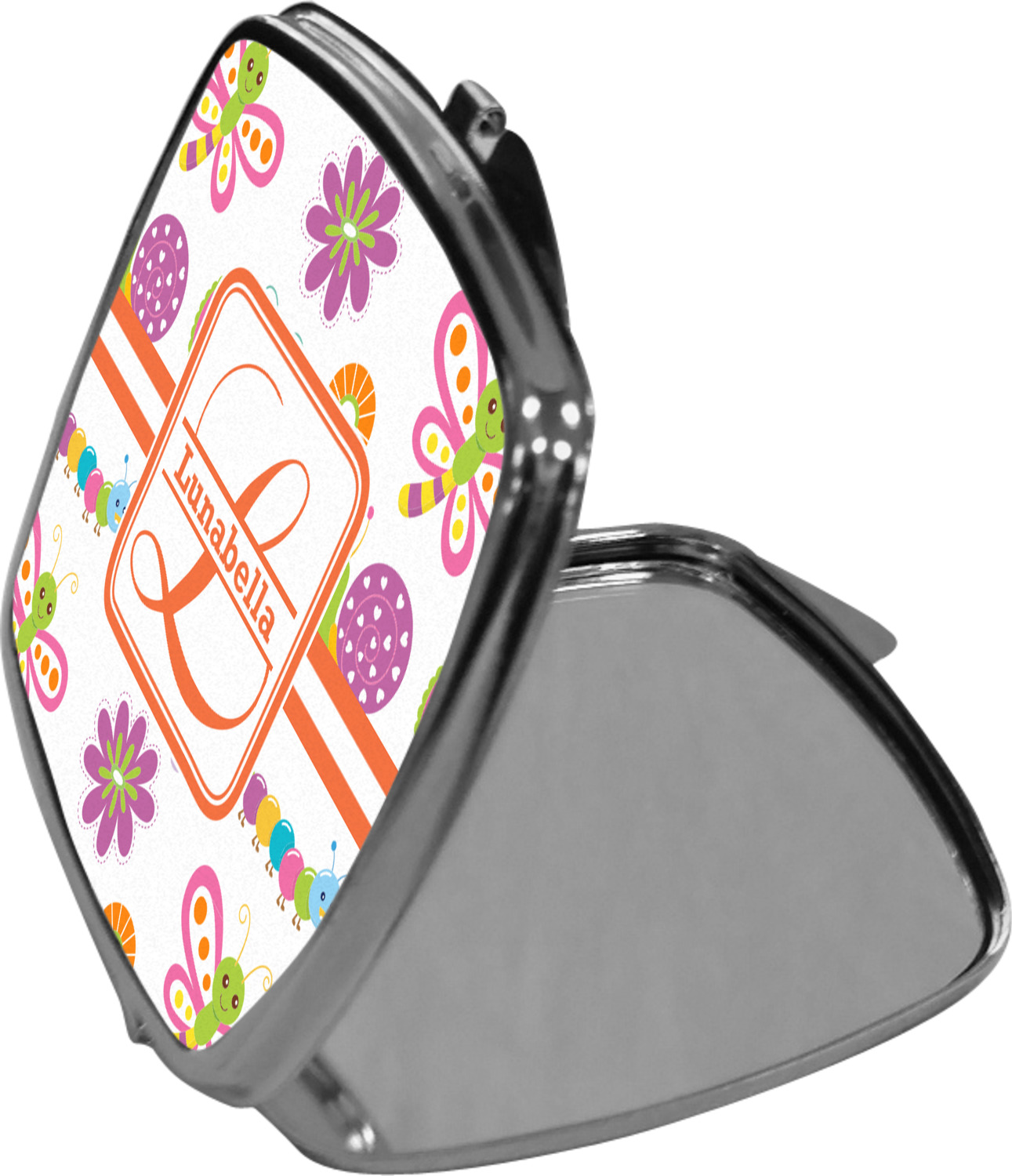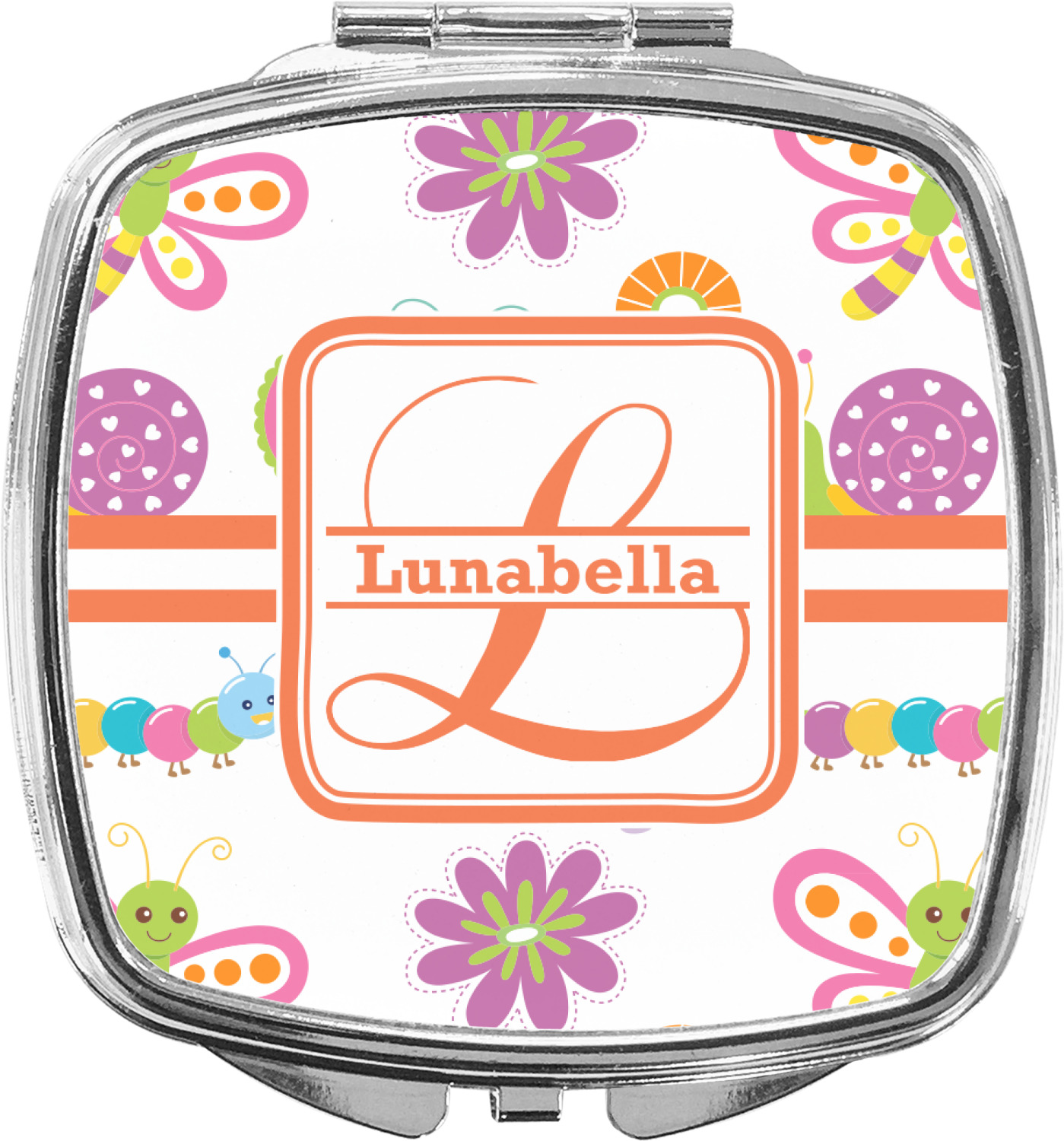 We offer many prints and patterns and many of our patterns are available in 45 different colors. You can personalized the compact mirrors with a name, a monogram or just an initial. We offer several different label, ribbon and font choices. Our customization system lets you create your very own custom & unique product and it lets you preview it before you purchase.