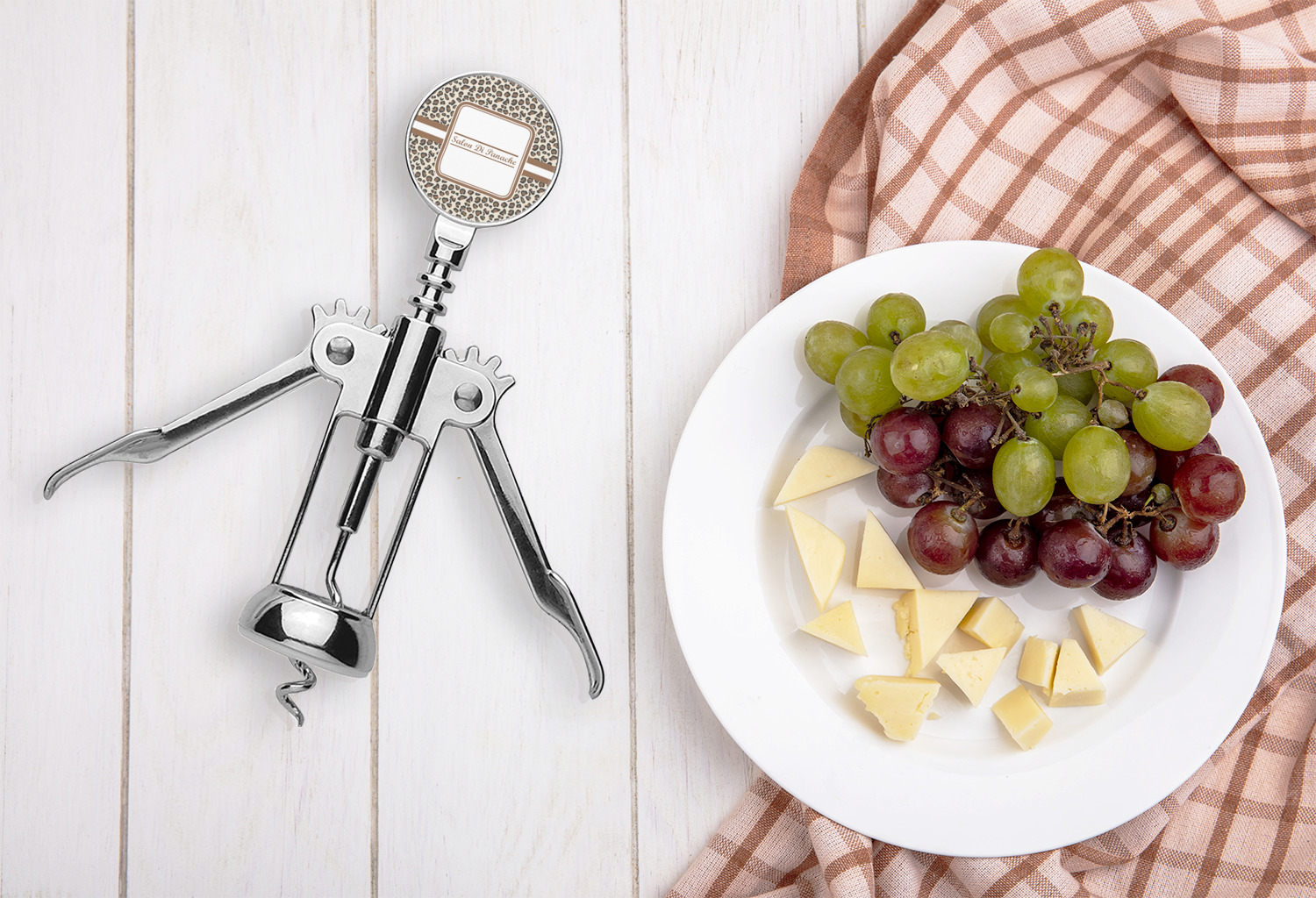Built from a robust stainless steel, this wine bottle opener features winged grippers that let you remove the cork with little to no resistance. Your personalized corkscrew also includes a circular turn-handle at its top. At 7 inches long, you can easily store this wine corkscrew in a drawer or a shelf. Your customization is printed on both sides of the turn-handle, and can be customized individually.