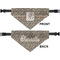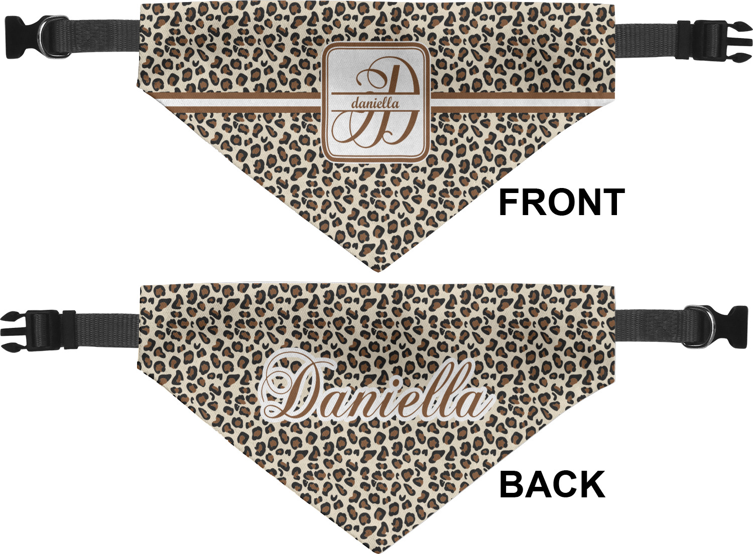 We print the front and back of these dog bandanas with your customized design. The bandana itself is made from a durable polyester, sewn together with a gap large enough to accommodate any collar. Regardless, the bandana includes a plain black, canvas collar with plastic snaps, that can easily be removed if desired. These dog bandana collars are available in four sizes: small, medium, large, and extra large. Please see our sizing chart for more information regarding the dimensions of each size.
