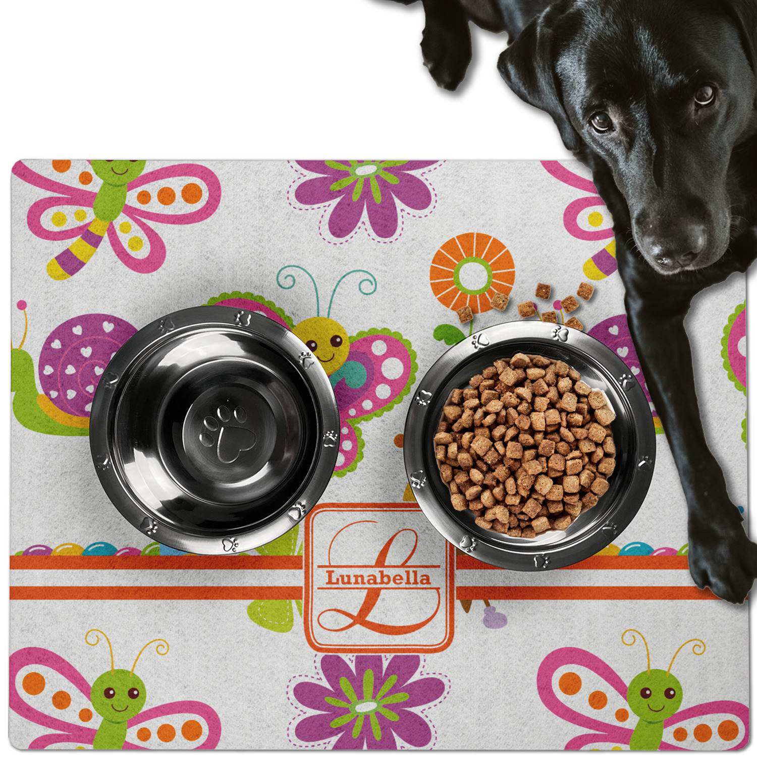 This dog bowl mat, fabricated from polyester, proudly displays your customized design on its top, while its bottom includes a non-slip rubber. This feature allows it to remain firmly in place, even when your dog spills his/her water. With 3 sizes available (18" x 12", 24" x 18", 30" x 24"), the pet food mat has ample space for both a food and water bowl for any sized dogs. Though specified for dogs' use, these mats are also a splendid option for cats.