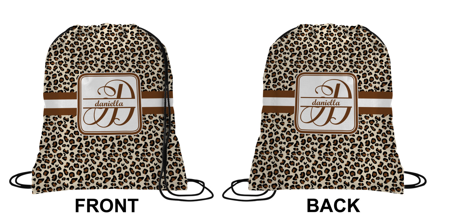 Your custom design will appear on the front and the back of the backpack. You can customize each side individually. The inside of the backpack is white and the drawstrings are black. The back pack is made of 100% polyester fabric.