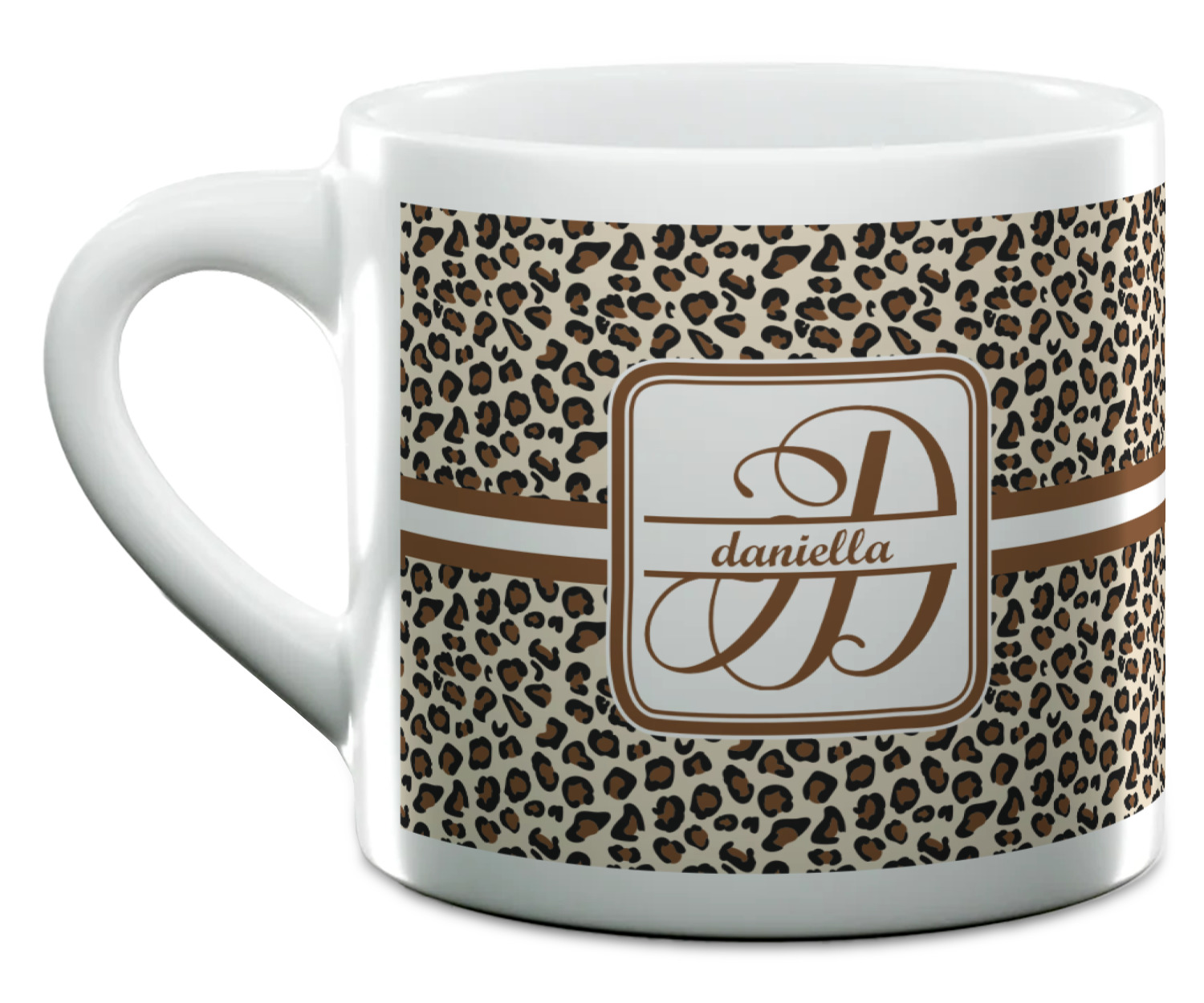 Each of our espresso mugs is a ceramic material sure to keep your drink warm. Personalize one cup for yourself, or order a set of 4! Its the perfect little gift for any coffee lover! We carry two sizes for you to personalize - 3 oz. (approx. 3.25" x 2.325" x 2.625") or 6 oz. (approx. 4" x 2.9" x 2.9"). Our 3 oz. mug is perfect for that single shot espresso while our 6 oz. mug can be your next favorite cappuccino cup holding two shots of espresso!