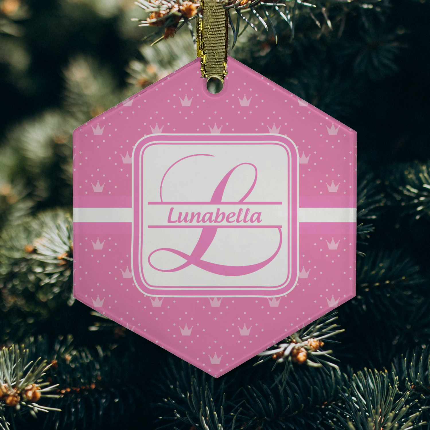 Each of our flat glass ornaments come with a gold string to hang on your Christmas tree with style! We offer two different shapes - flat, round ball or a hexagon. Both glass ornaments have a frosted coating on one side where we print your design while the other side is a clear gloss to give your personalized ornament a sheen finish. Our flat round glass ornament is approximately 3.5" x 3.5" while the flat hexagon ornaments are approximately 3.5" x 3".
