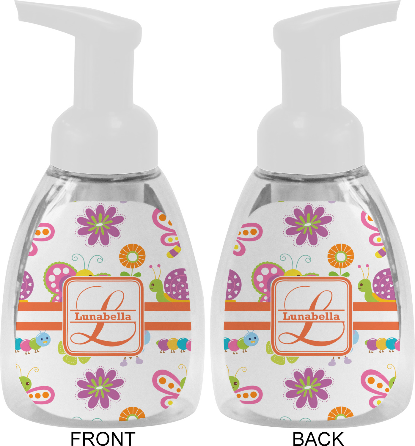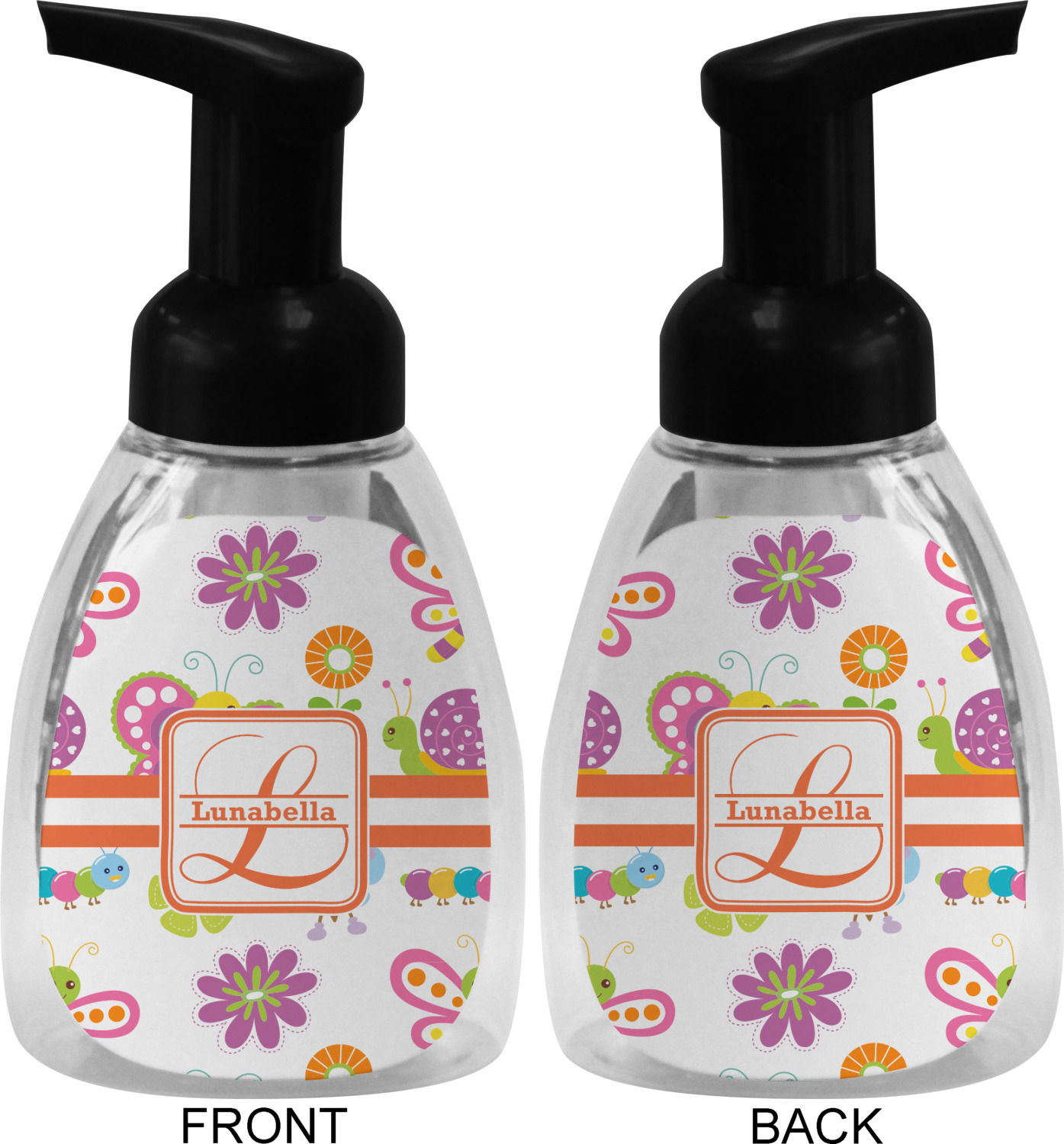 This soap dispenser is made of a robust plastic and has a clear base. The included soap pump is available in black or white color. This dispenser is 6.5 inches tall, 3 inches wide, and 2 inches deep. We display your customized designs on the front and back sides of these foaming hand soap dispensers.