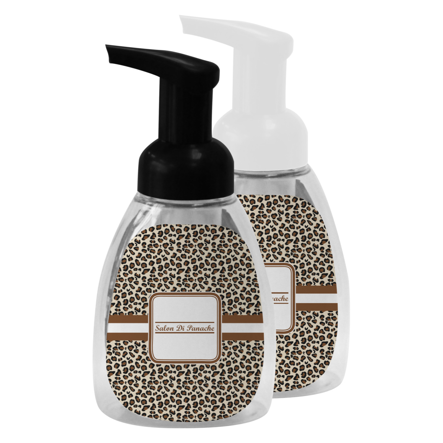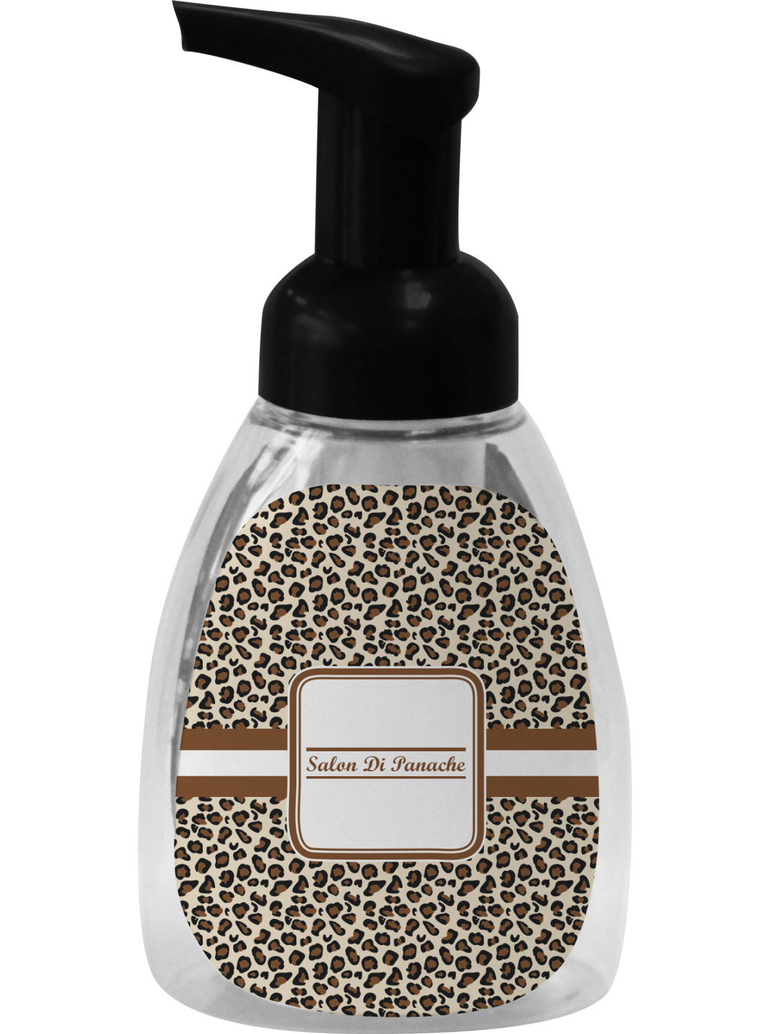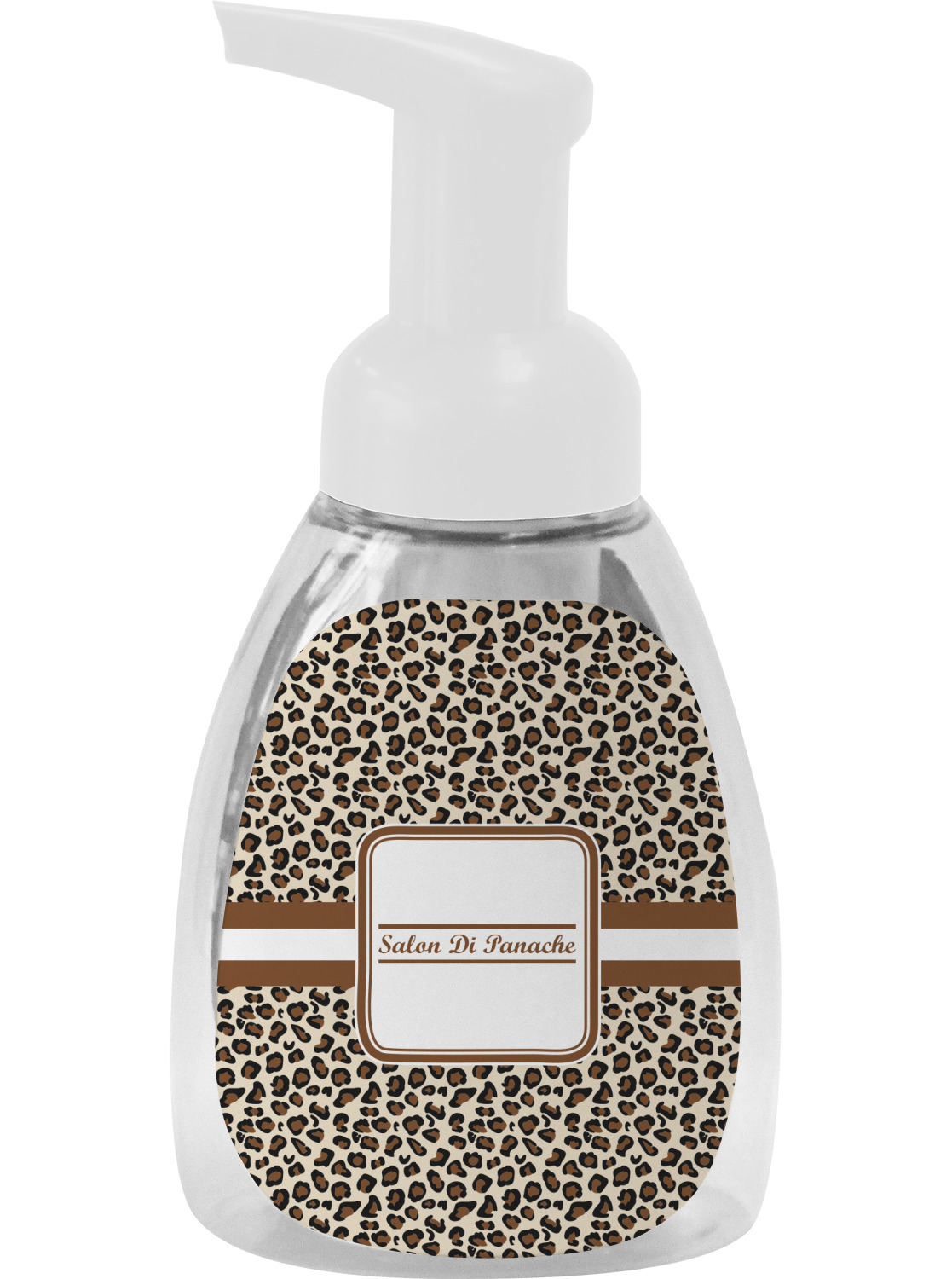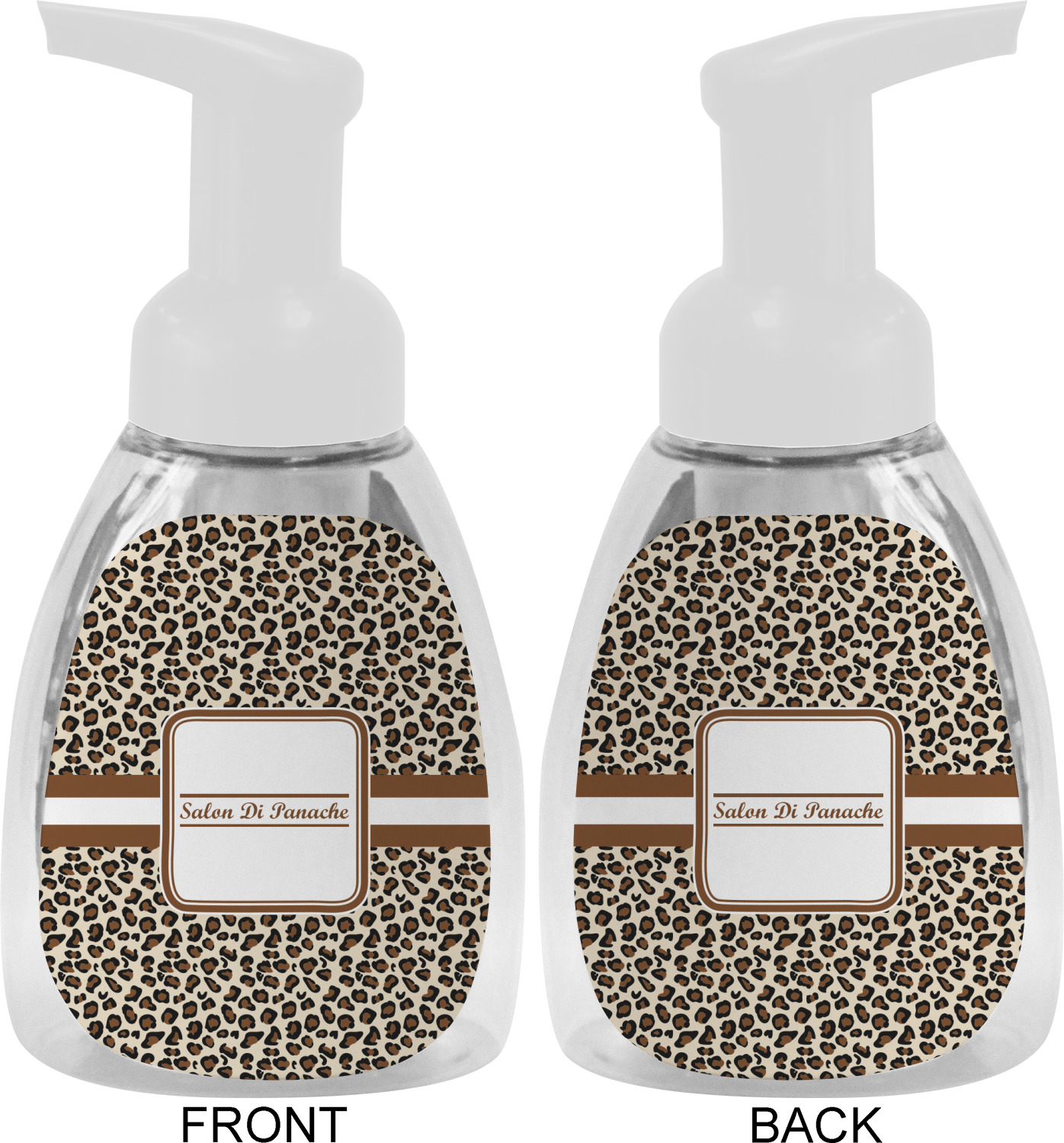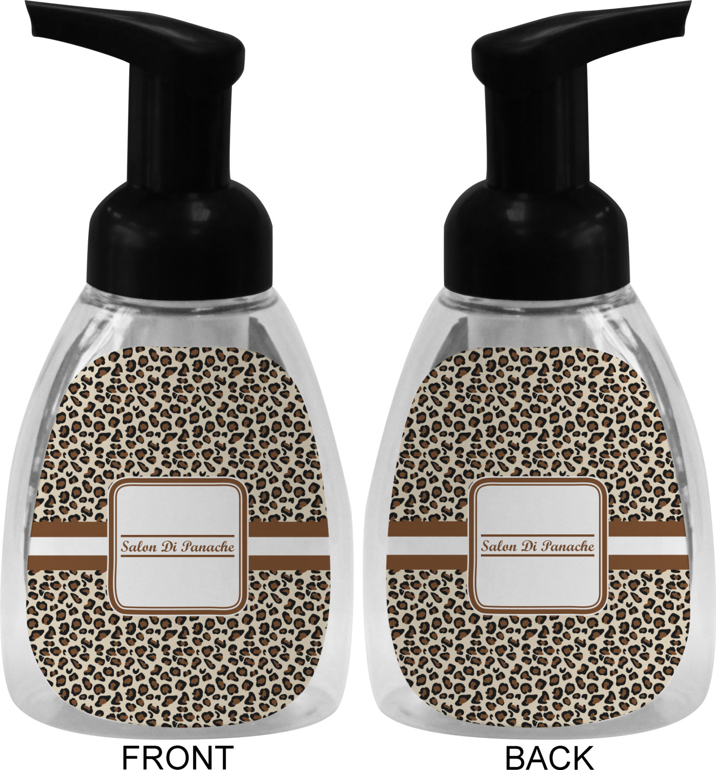 This soap dispenser is made of a robust plastic and has a clear base. The included soap pump is available in black or white color. This dispenser is 6.5 inches tall, 3 inches wide, and 2 inches deep. We display your customized designs on the front and back sides of these foaming hand soap dispensers.