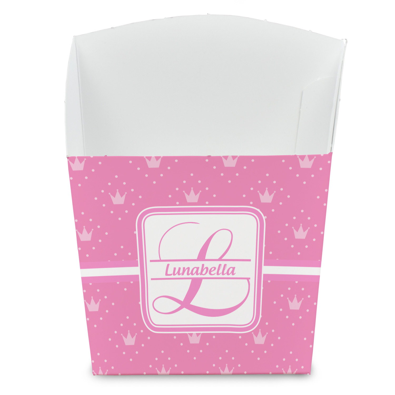 Since it is an open box, it works very well as a party snack cup (instead of plates) for different types of dry snacks and treats such as popcorn, cheezies, pretzels, chips, twizzlers, etc. This box can easily be carried with a drink all in one hand!