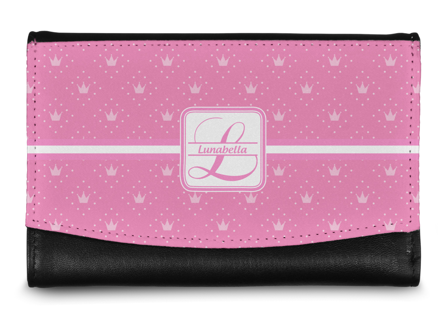 The compact size of this wallet - 5.5in wide, 3.5in tall and 0.75in thick when folded - makes it perfect to hold in hand and small enough to fit in a clutch or a normal size purse. The outside flap is customized with your choice of artwork and closes with a snap closure - with two different snaps to allow it to be adjusted when storing more items - to securely fasten the flap.