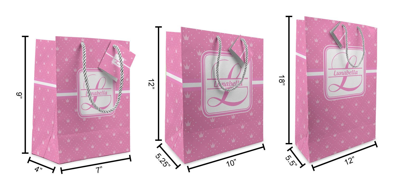 These custom gift bags come in your choice of 3 sizes. Their dimensions are below: