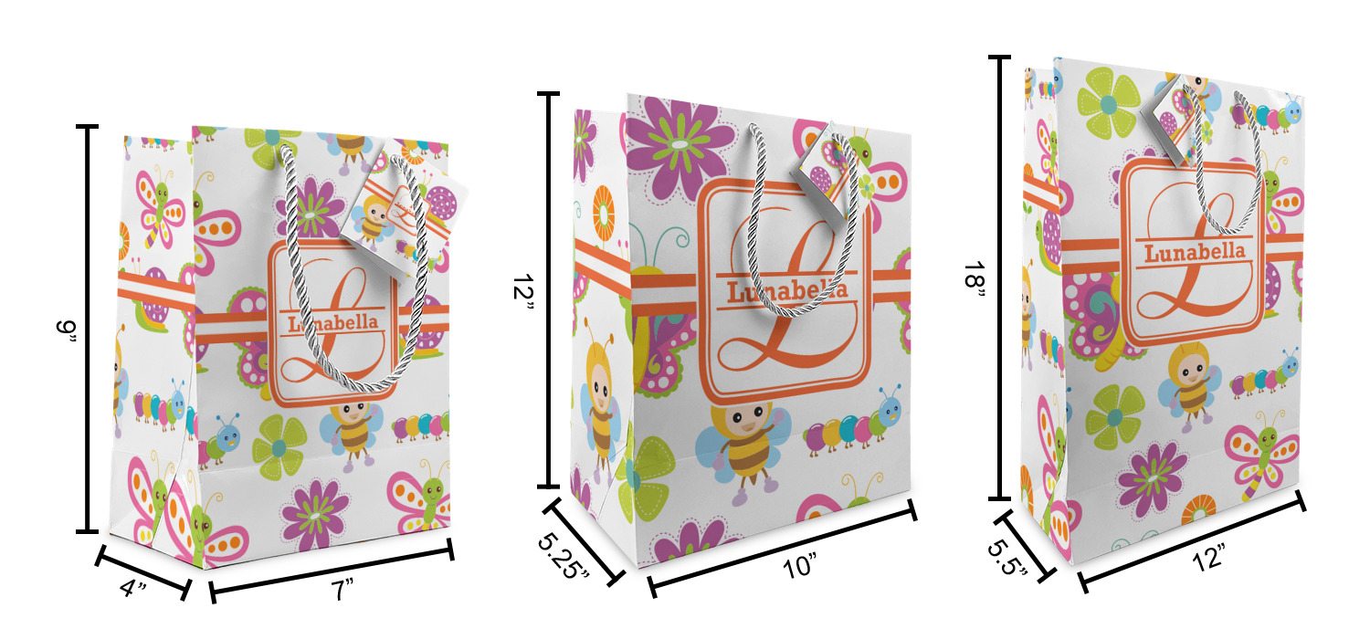 These custom gift bags come in your choice of 3 sizes. Their dimensions are below: