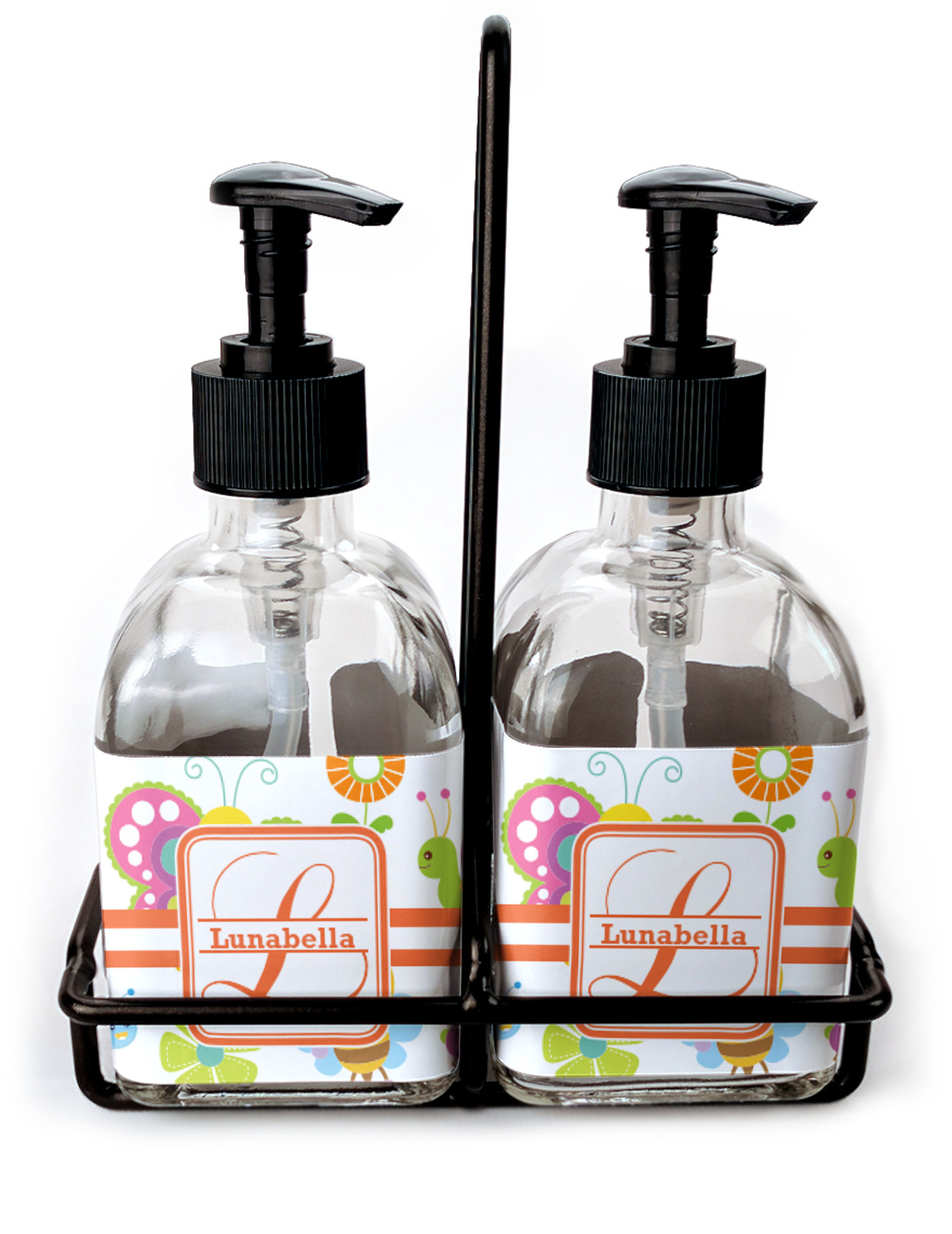 You can purchase these personalized soap dispensers as singulars, or as a set with two bottles. With your purchase of the set, we include a black frame that complements the black color of the pumps and adds to the overall classy look of the piece.