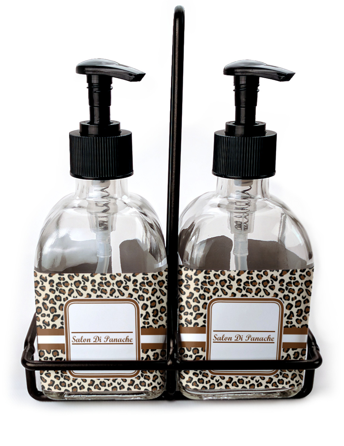 You can purchase these personalized soap dispensers as singulars, or as a set with two bottles. With your purchase of the set, we include a black frame that complements the black color of the pumps and adds to the overall classy look of the piece.