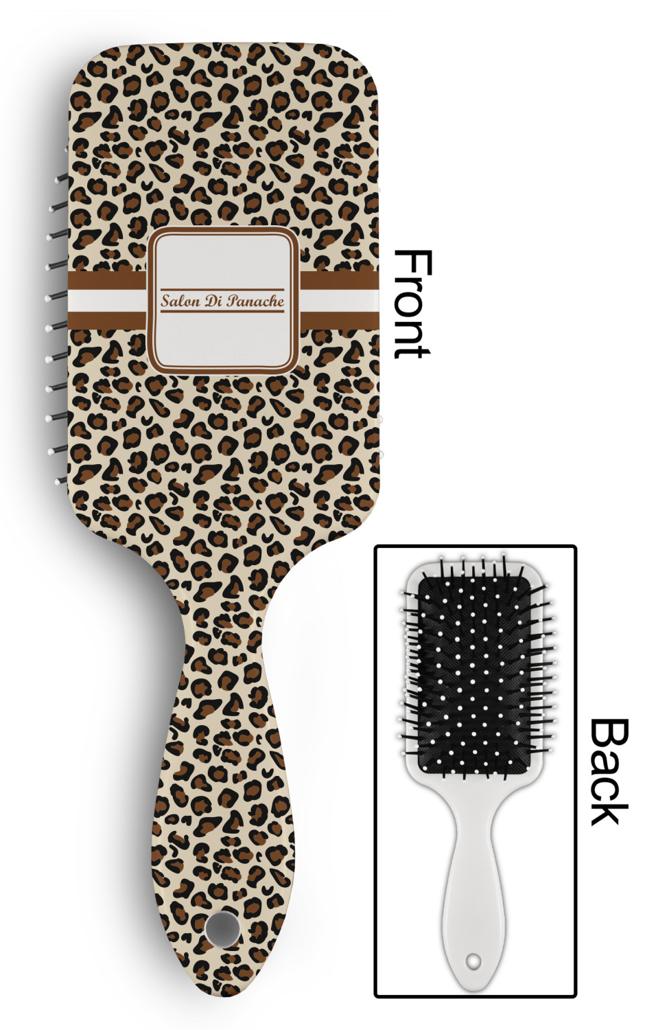 Your designed is printed on the front of the brush.; The back handle and sides are white.