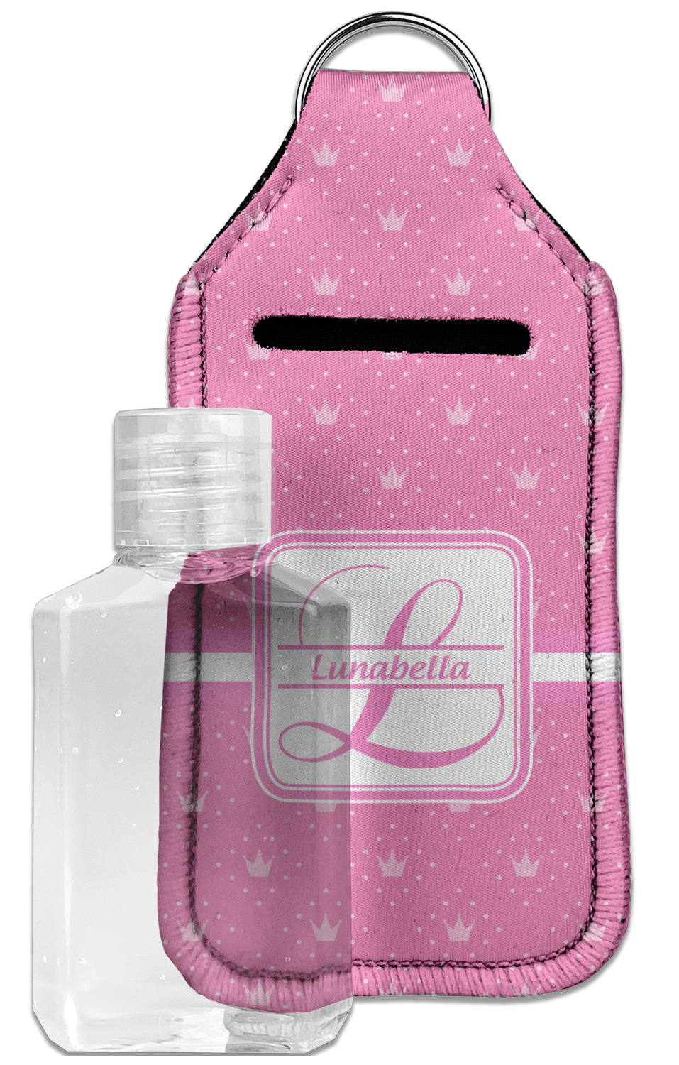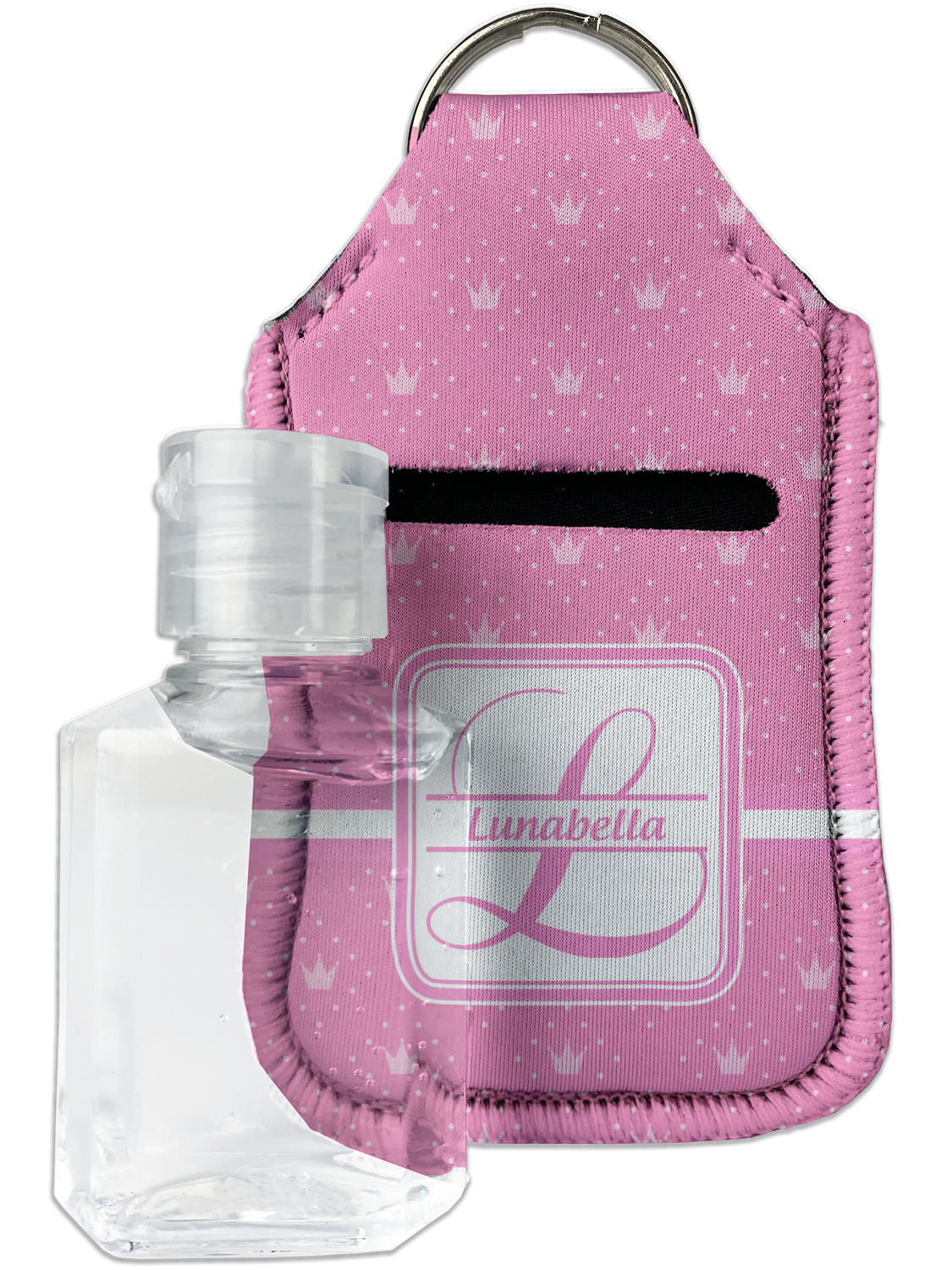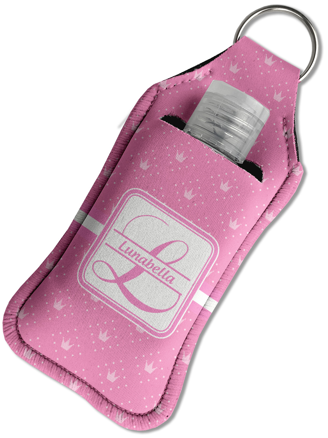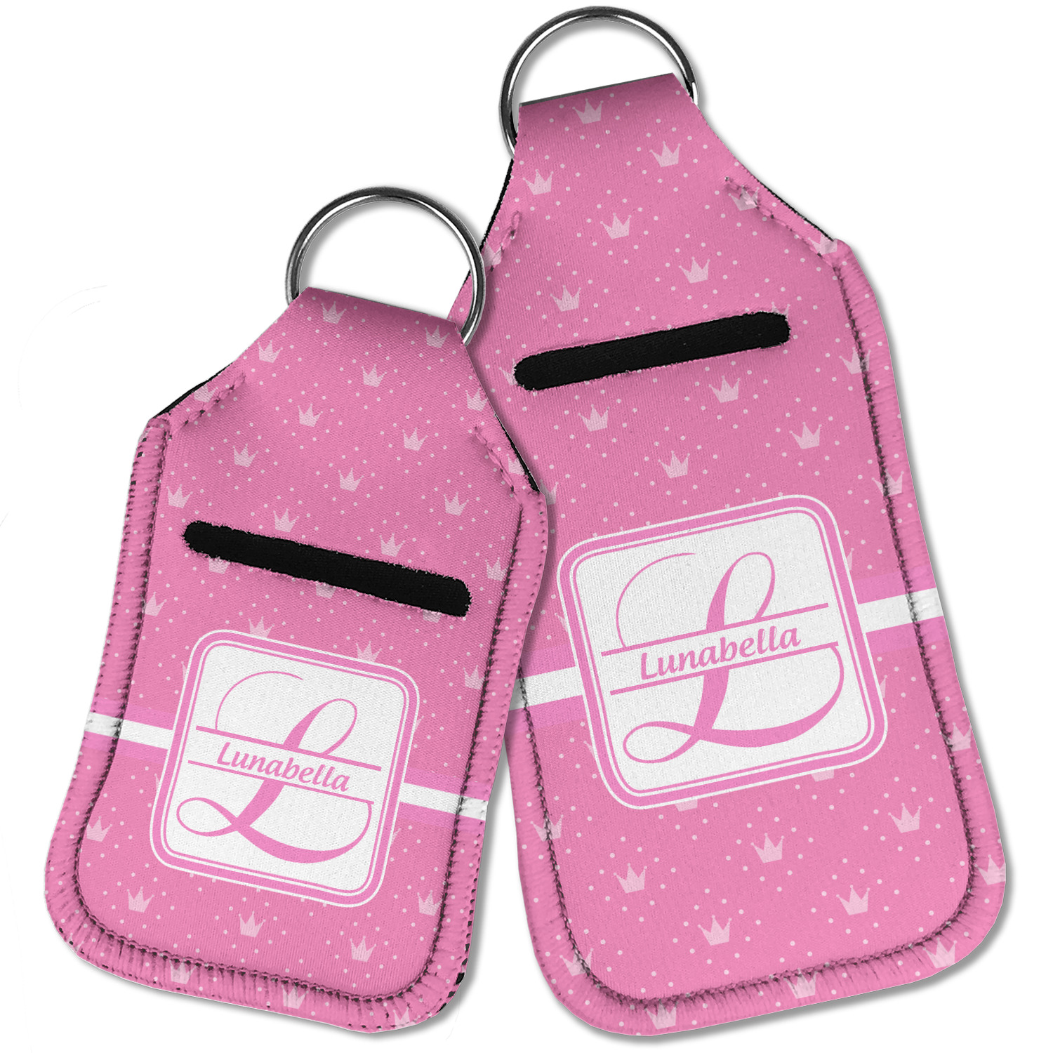 Each hand sanitizer holder comes with its own empty travel-sized, refillable hand sanitizer sure to fit snug in your customized sanitizer case! Our hand sanitizer cases are a durable, yet soft neoprene material sure to last any daily activities or travel agenda. Customize and personalize a hand sanitizer bottle holder with one of our two sizes - small (4.25" x 2.25") or large (5.5" x 2.5"). Each travel sanitizer holder comes with a keyring for attachment on bags, keys, or more!