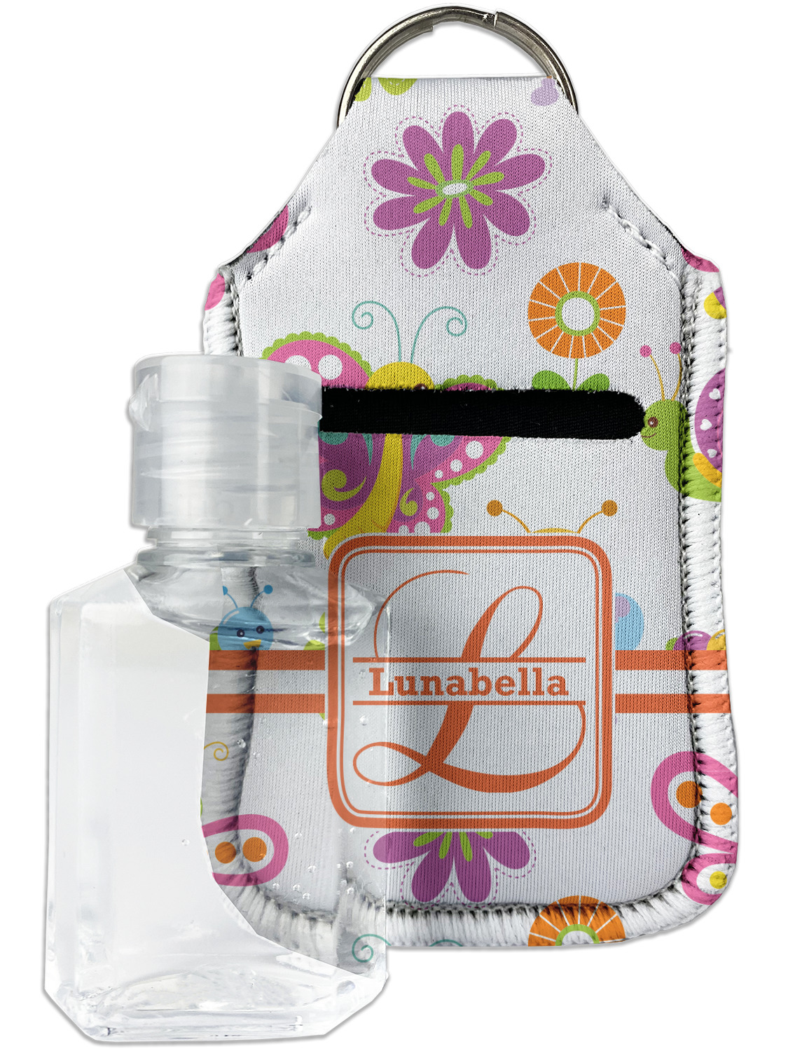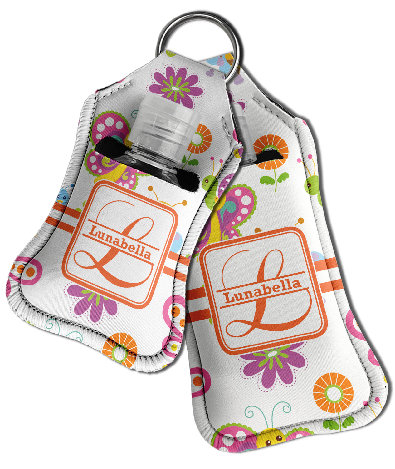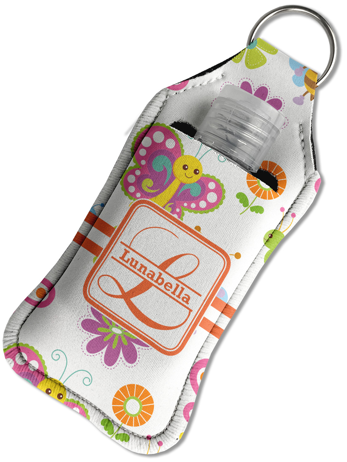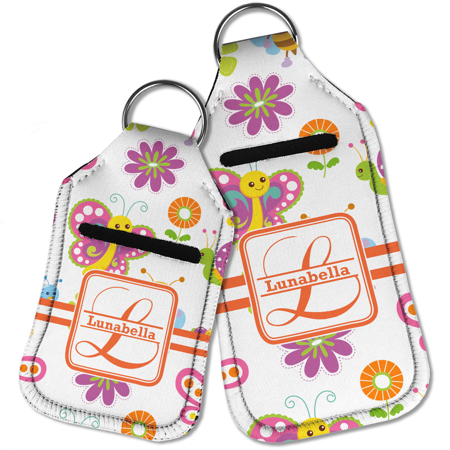 Each hand sanitizer holder comes with its own empty travel-sized, refillable hand sanitizer sure to fit snug in your customized sanitizer case! Our hand sanitizer cases are a durable, yet soft neoprene material sure to last any daily activities or travel agenda. Customize and personalize a hand sanitizer bottle holder with one of our two sizes - small (4.25" x 2.25") or large (5.5" x 2.5"). Each travel sanitizer holder comes with a keyring for attachment on bags, keys, or more!