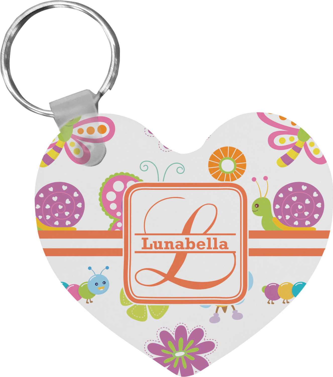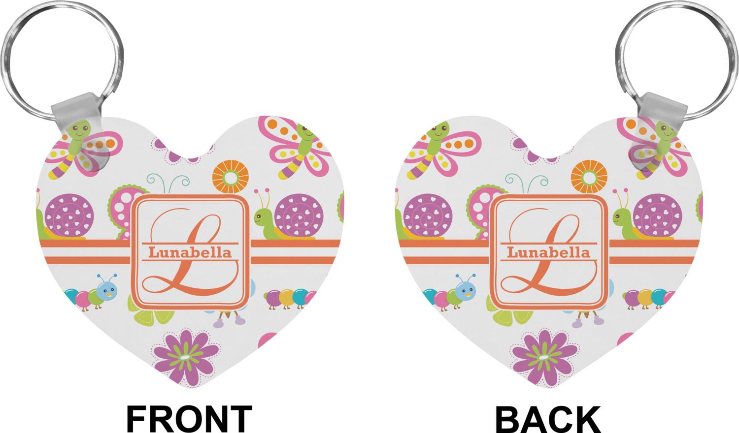 Our personalized keychains attach to the included metal, split key ring with a plastic, removable snap. Since a metal ring is included with your purchase, you have the liberty to keep your keys together on the ring, with or without your unique keychain. We offer this keychain in three different shapes: circle, heart, or diamond. We print your personalized design(s) on both sides of the key chain, and the surface has a glossy, reflective finish that only emphasizes your design. Each keychain is approximately 2.25 by 2.25 inches.