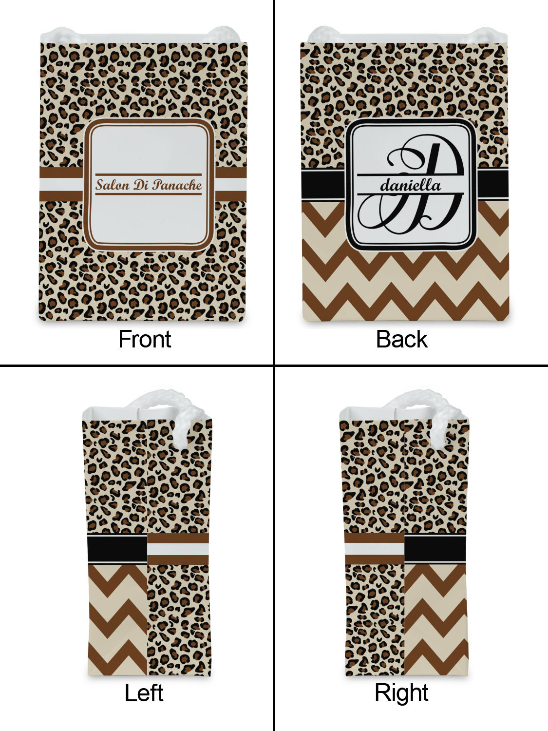 You can design a your gift bag by customizing one of our design templates. Our design studio enables you to customize your design - you can change any part of the design template. You can also upload a photo, logo or any image.