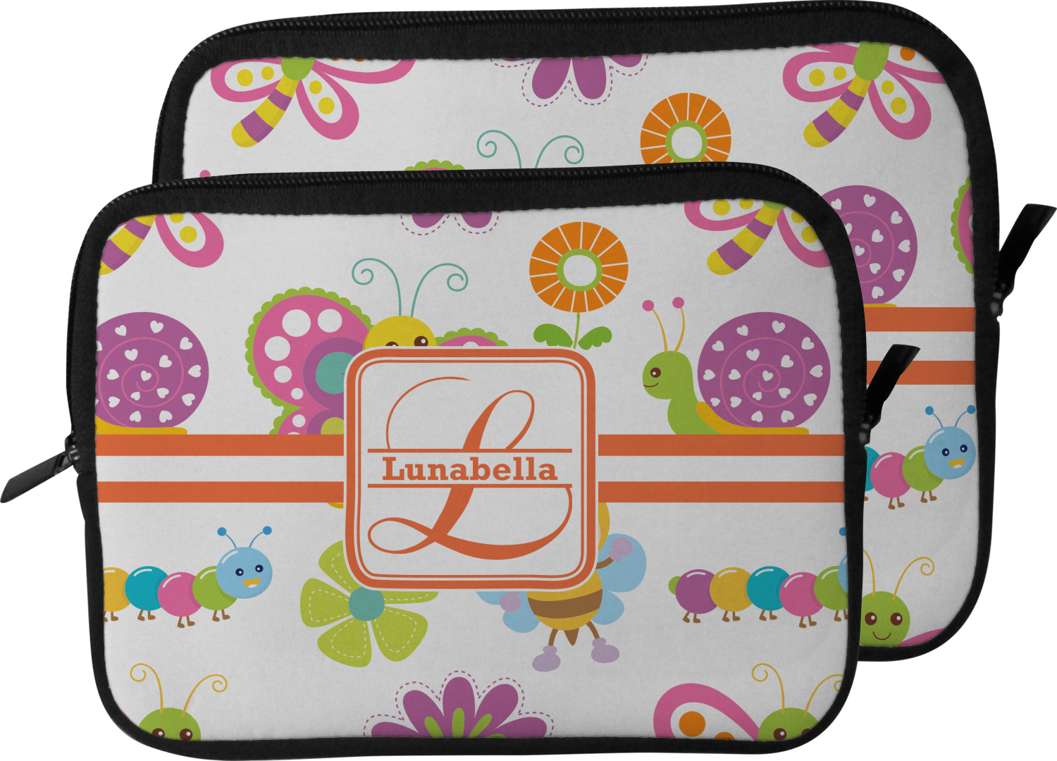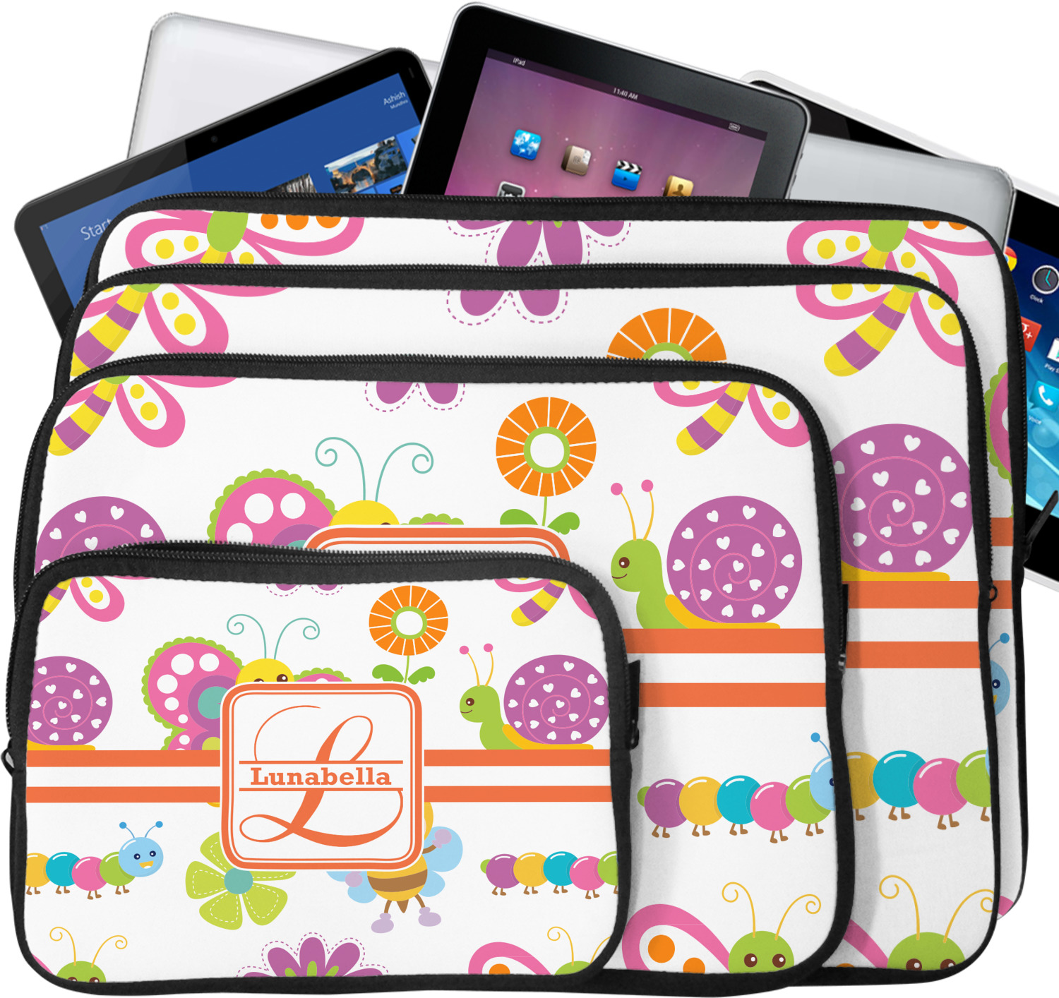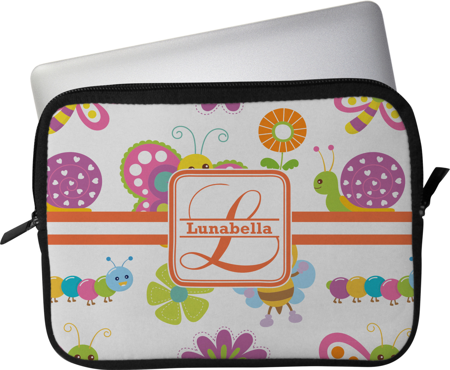 These laptop covers are built from a water-resistant, cushioned neoprene. We display your personalized design on the front of this computer sleeve, while the other sides are simply the black color of the neoprene fabric. A zipper lines the top half of this case, for direct access to your device. For added protection, the interior of this neoprene laptop sleeve is lined with a padded, minky-like material.