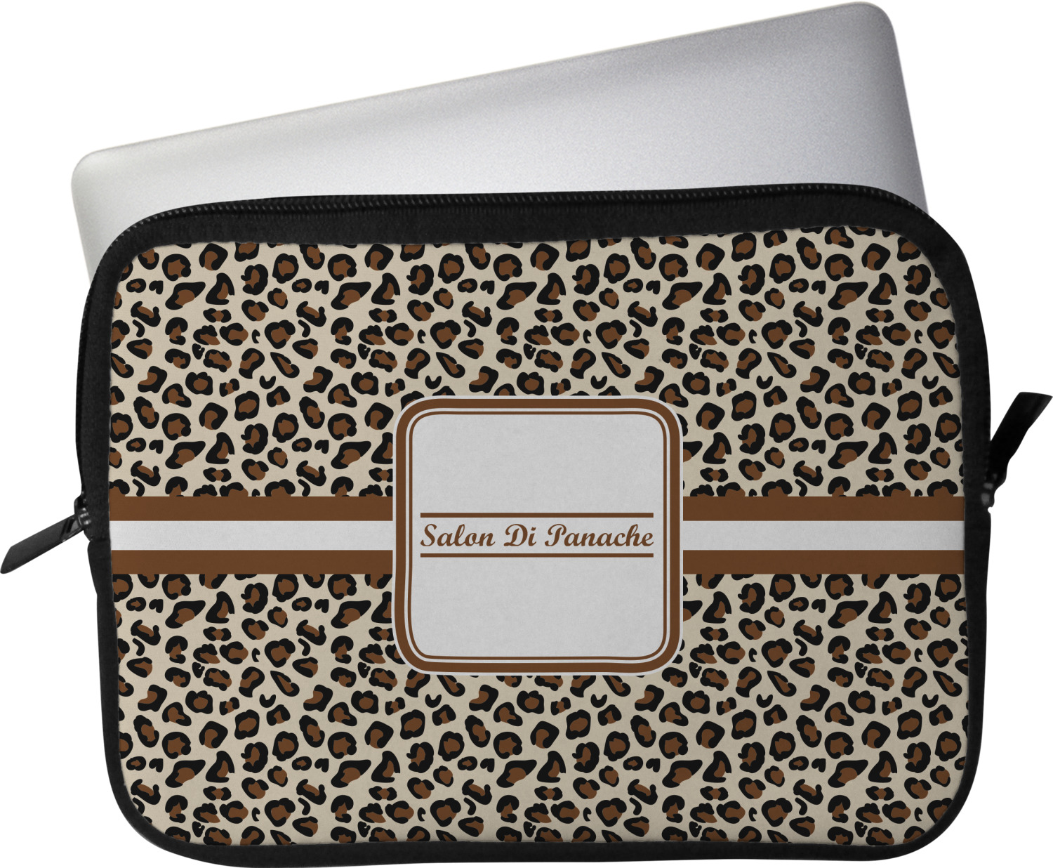 These laptop covers are built from a water-resistant, cushioned neoprene. We display your personalized design on the front of this computer sleeve, while the other sides are simply the black color of the neoprene fabric. A zipper lines the top half of this case, for direct access to your device. For added protection, the interior of this neoprene laptop sleeve is lined with a padded, minky-like material.