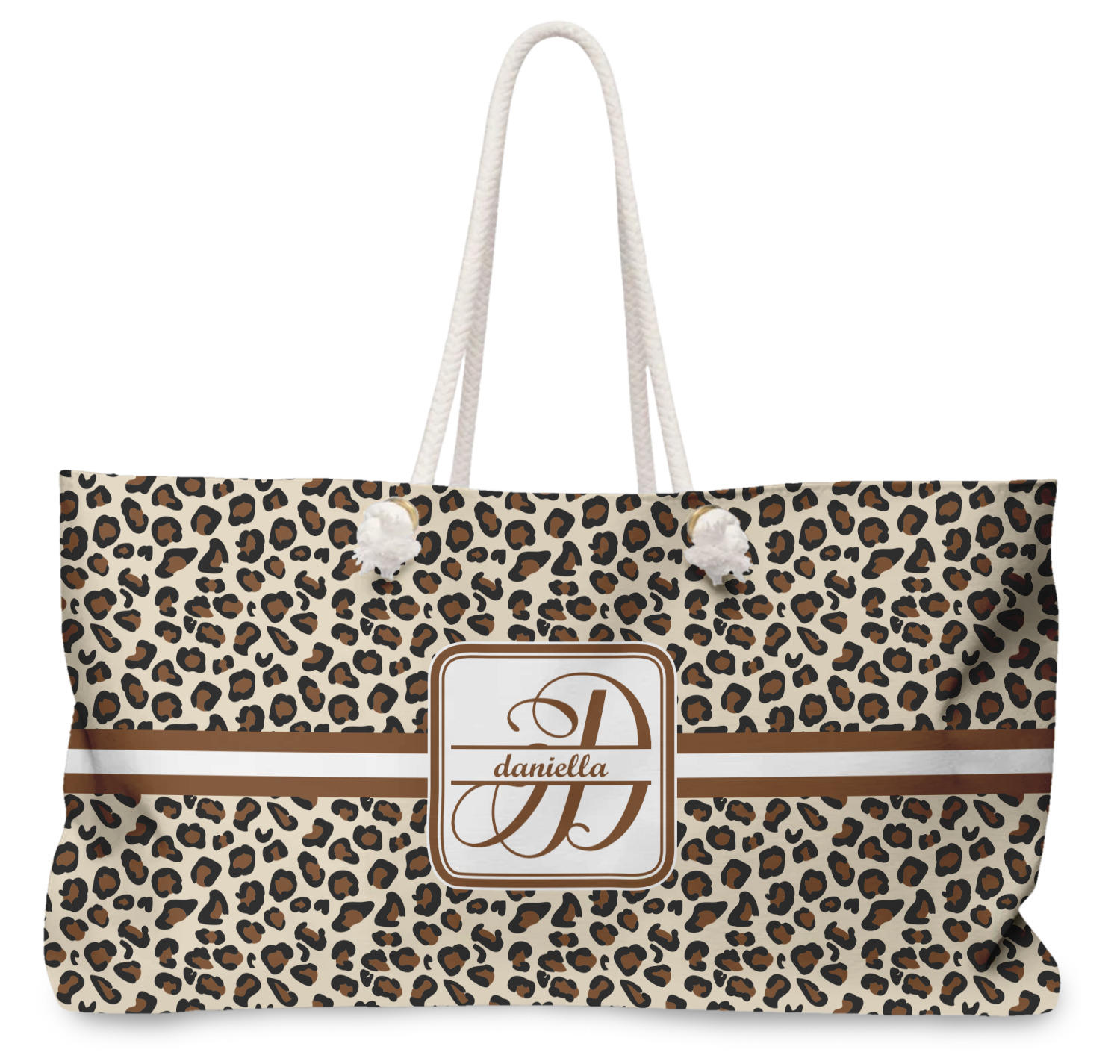 Our oversized weekender tote with rope handles is perfect for your weekend at the beach or on the town. This large tote are 24" W X 13" H, with a 5" gusset and a 27" thick rope handles with a knot that is put through a grommeted brass hole.