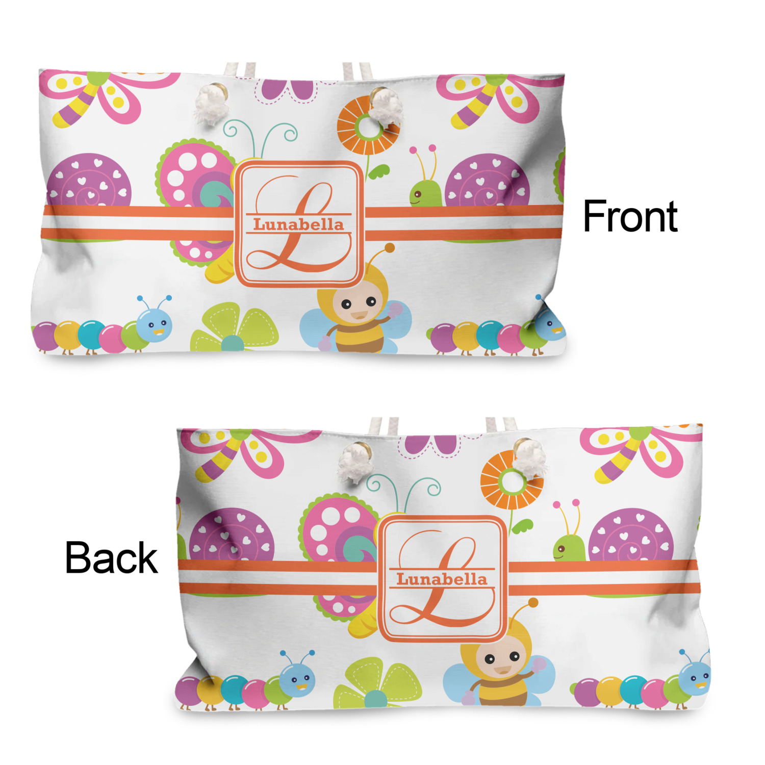 These weekender totes can be customized front and back. The totes are full all over print - so the choice of how background are endless - from beautiful floral or leaf patterns to geometrics or some classic Van Gogh artwork - the possibilities are endless. The totes can also be decorated with photos and logos.