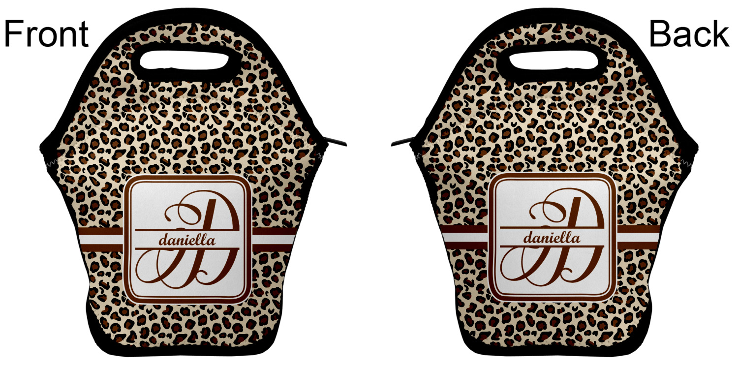 Our personalized lunch bags are made from a strong neoprene, and secure with a zipper closure that lines the top of the bag.The edges of the neoprene are sewn together with a heavy duty stitch, adding to the durability of the bag. The is accompanied by a reinforced handle at its top, for the easy transport of your lunch. We display your personalization across both the front and back of this neoprene lunch bag, while the remaining sides are a sleek black in color. Each bag measures at 13.5 inches tall, and 11.5 inches wide.