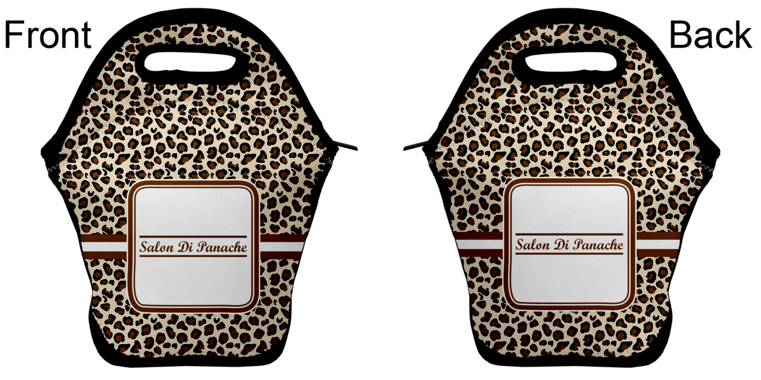 Our personalized lunch bags are made from a strong neoprene, and secure with a zipper closure that lines the top of the bag.The edges of the neoprene are sewn together with a heavy duty stitch, adding to the durability of the bag. The is accompanied by a reinforced handle at its top, for the easy transport of your lunch. We display your personalization across both the front and back of this neoprene lunch bag, while the remaining sides are a sleek black in color. Each bag measures at 13.5 inches tall, and 11.5 inches wide.