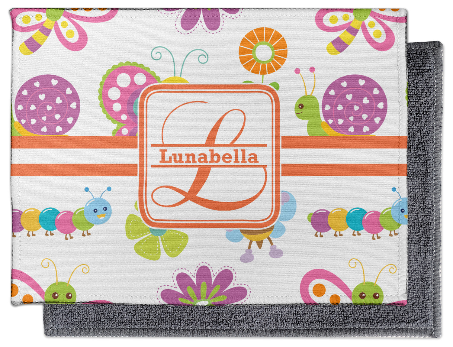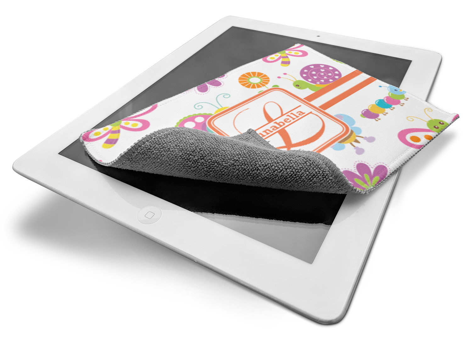 The back of this cleaning cloth is made from a gentle, grey microfiber material, that is masterful at removing smudges, grease, and fingerprints from lenses or electronic screens. The front side of the screen cleaner displays your personalized design in vibrant color. A beautiful stitch lines the edges and secures the microfiber to the polyester top. We provide you with the option of customizing this screen horizontally or vertically, depending on your preferences.