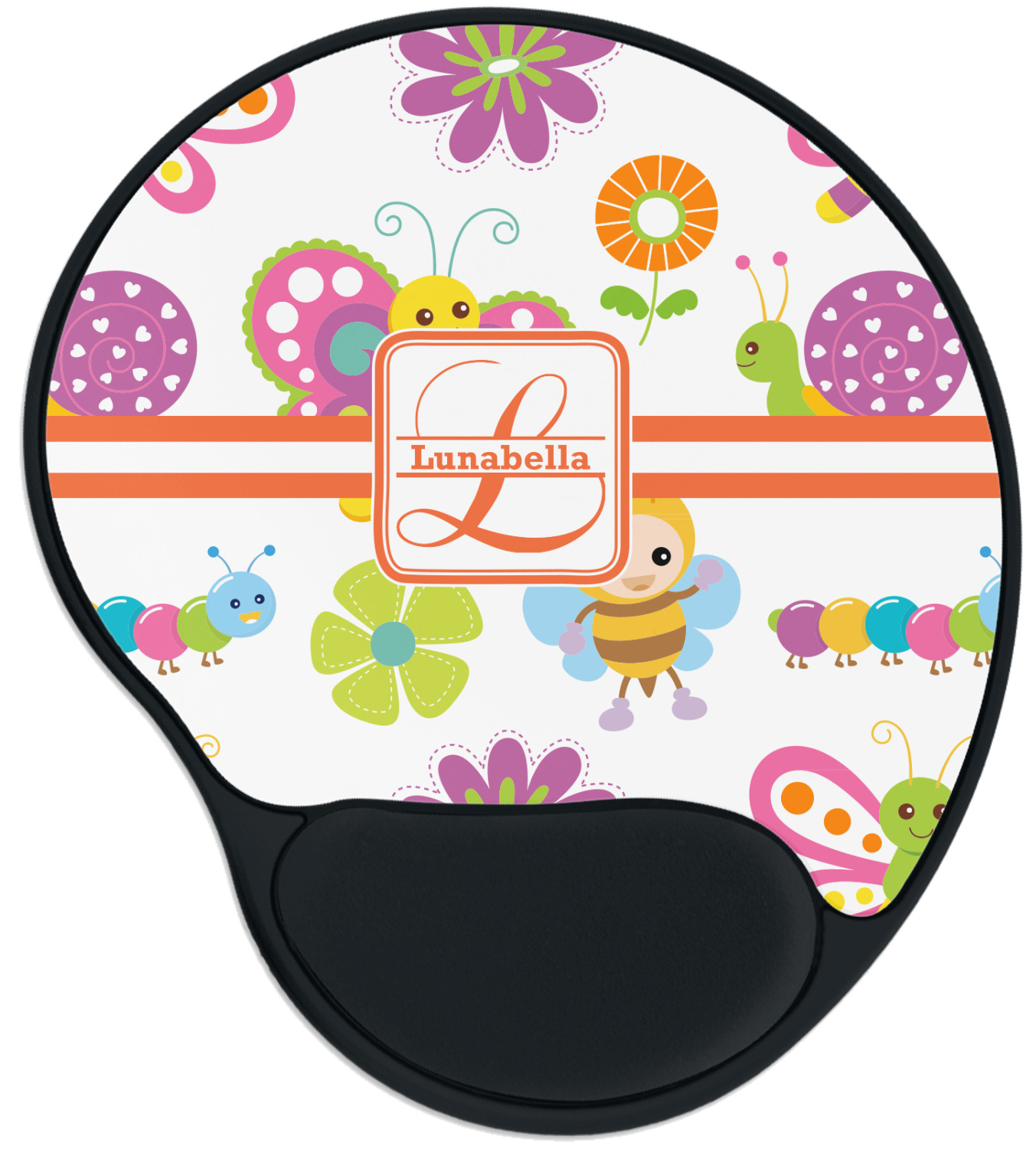 The top of these personalized mouse pads are made from a polyester, while the underside is plastic. The back of these mouse mats include rubber feet to prevent any slippage while in use. A padded wrist support, made from plush memory foam, occupies the bottom section of these computer mouse pads. Your customized design is printed onto the face of this mat, with the remaining sides and support piece colored in black. The mat itself is rounded and measures at 10.25" x 9.13".