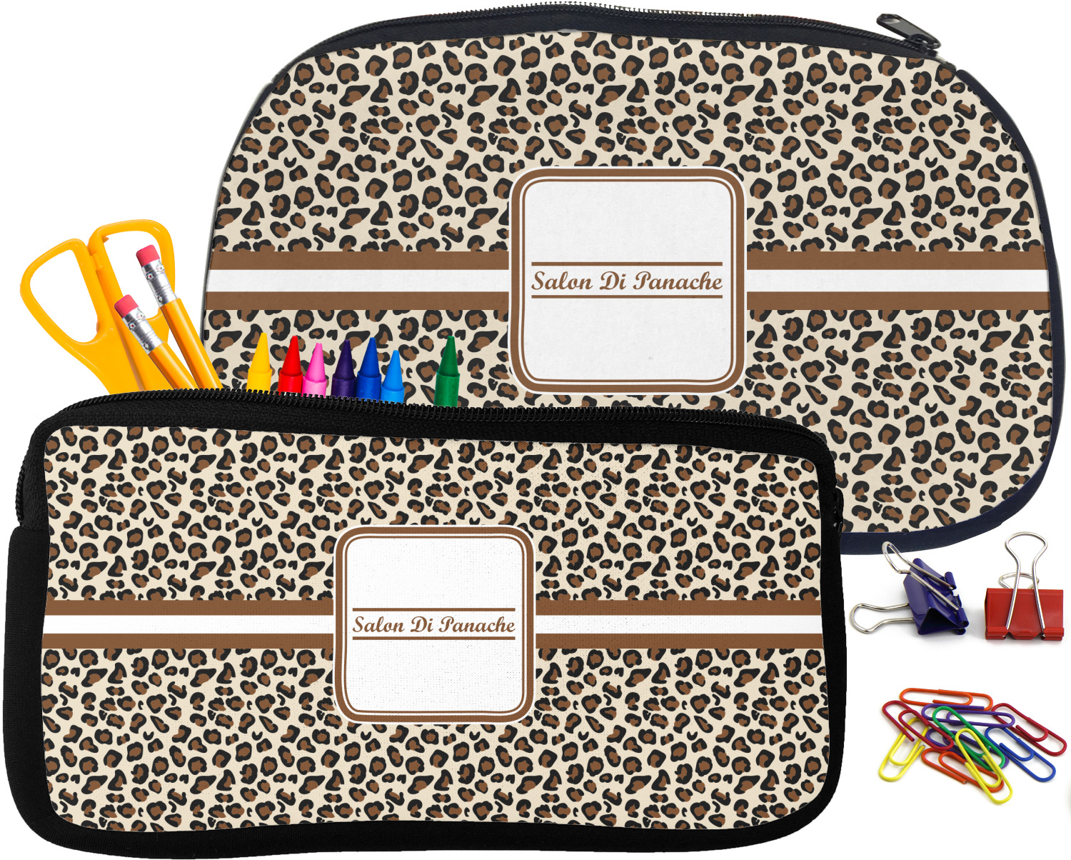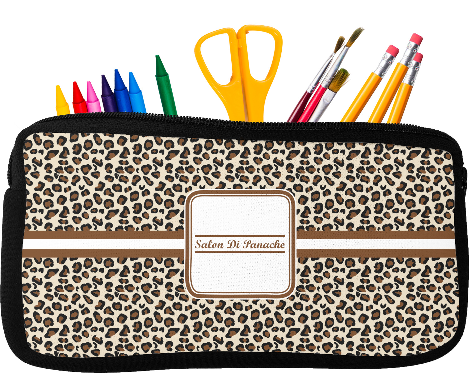 Built from durable neoprene, these pencil pouches, are water resistant, and prevent leaking ink from spilling into your backpack or purse. These custom pencil cases secure with a robust, black zipper. We print your personalized design on the front of this pouch, while the remaining sides a simple black color. These colored pencil cases [880] are sold in two sizes; our smaller version measures at 8.5 by 4.5 inches, while the medium measures at 10.5 by 6.5 inches. The smaller size is more suitable for holding pencils and pens, while our medium size can accommodate pencil sharpeners, scissors, and erasers.