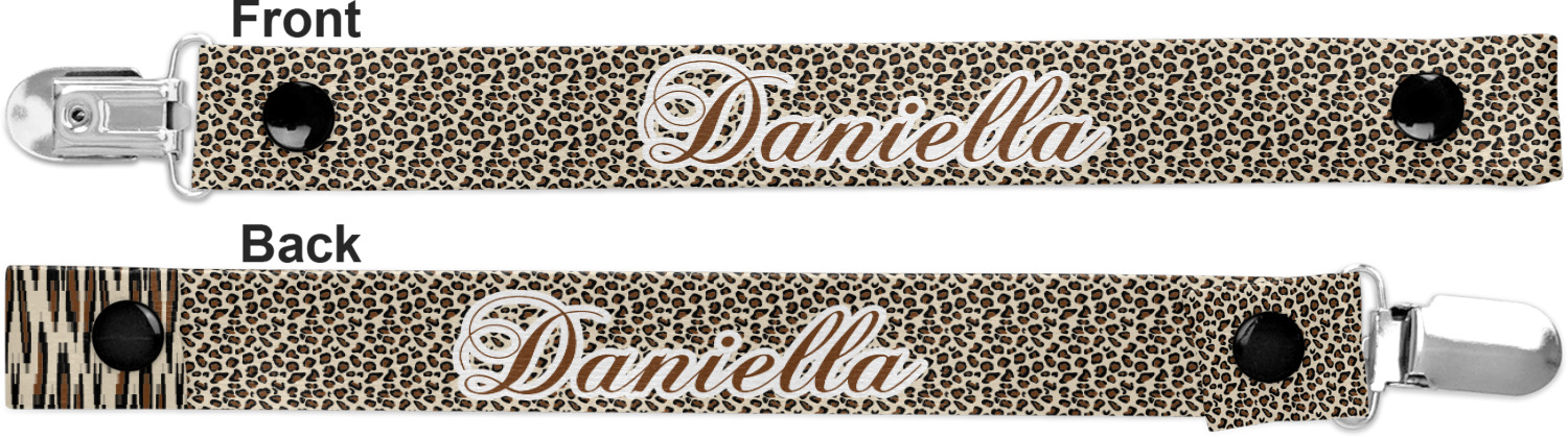 This personalized pacifier clip is the ideal size and measures at approximately 7.5 inches in length, when either end is snapped closed. On one end, you'll find a snap button. This button of your baby's pacifier holder is what can be attached to their pacifier to hold is securely in place. Simply open the snap, slip it through the pacifier opening, and snap it back into place. On the opposite end of this baby pacifier holder, you'll find a metal clip that can secure to a baby's collar or sleeve. This clip ensures that the strap stays in place, and that your baby's pacifier is always on hand.