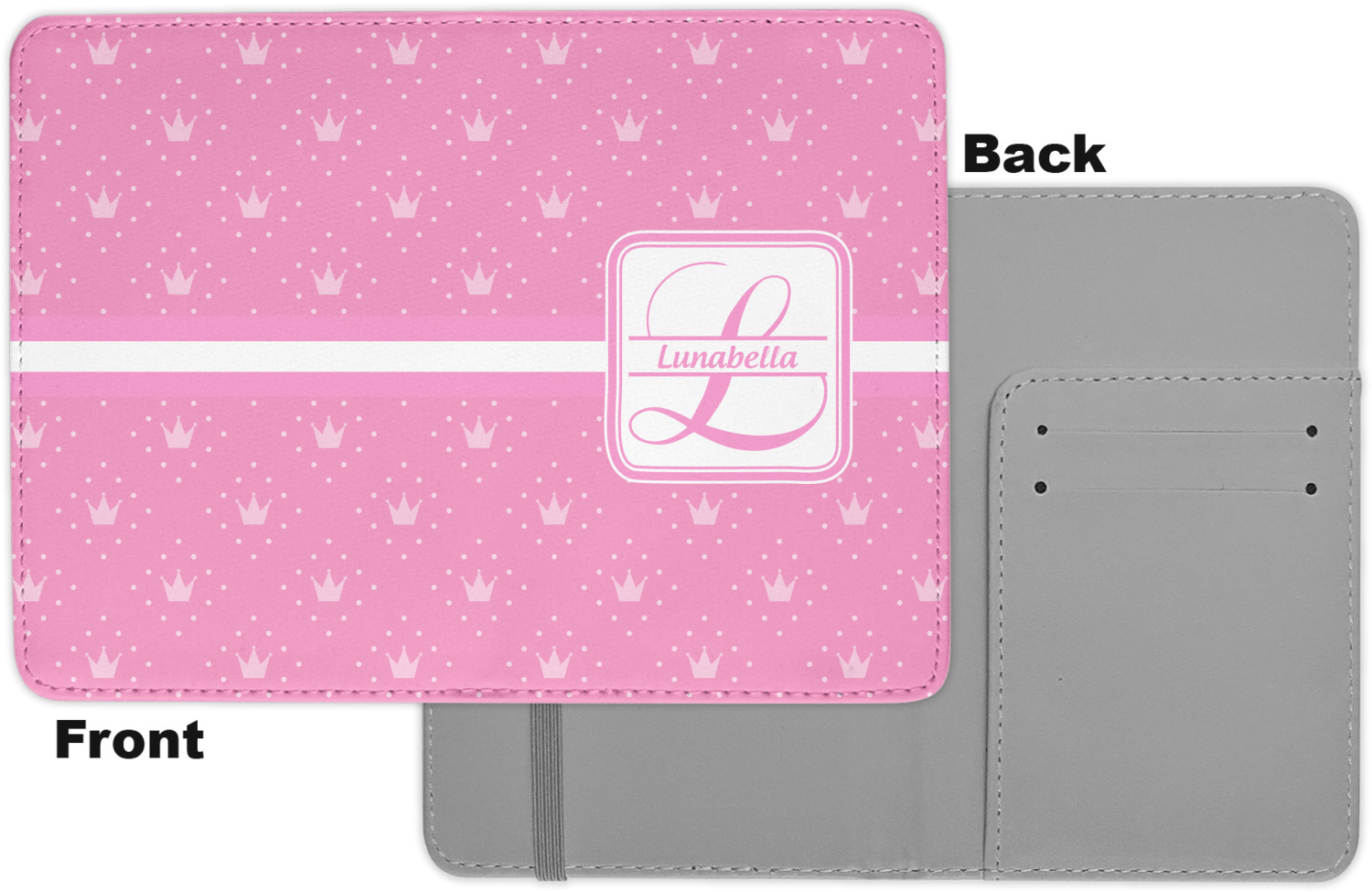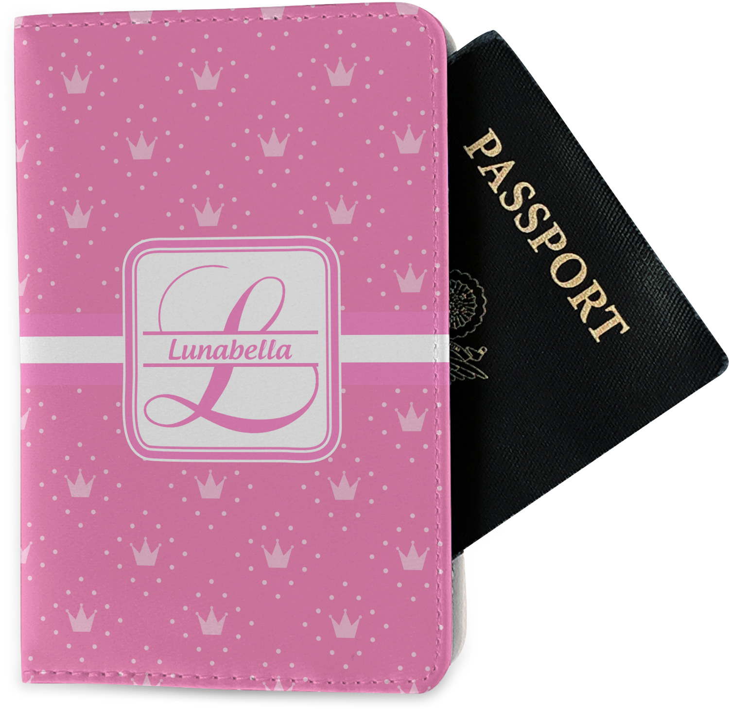 The passport holder has a beautiful inside made of faux leather, while the outside is a smooth slick vinyl like material printed with your personal design.