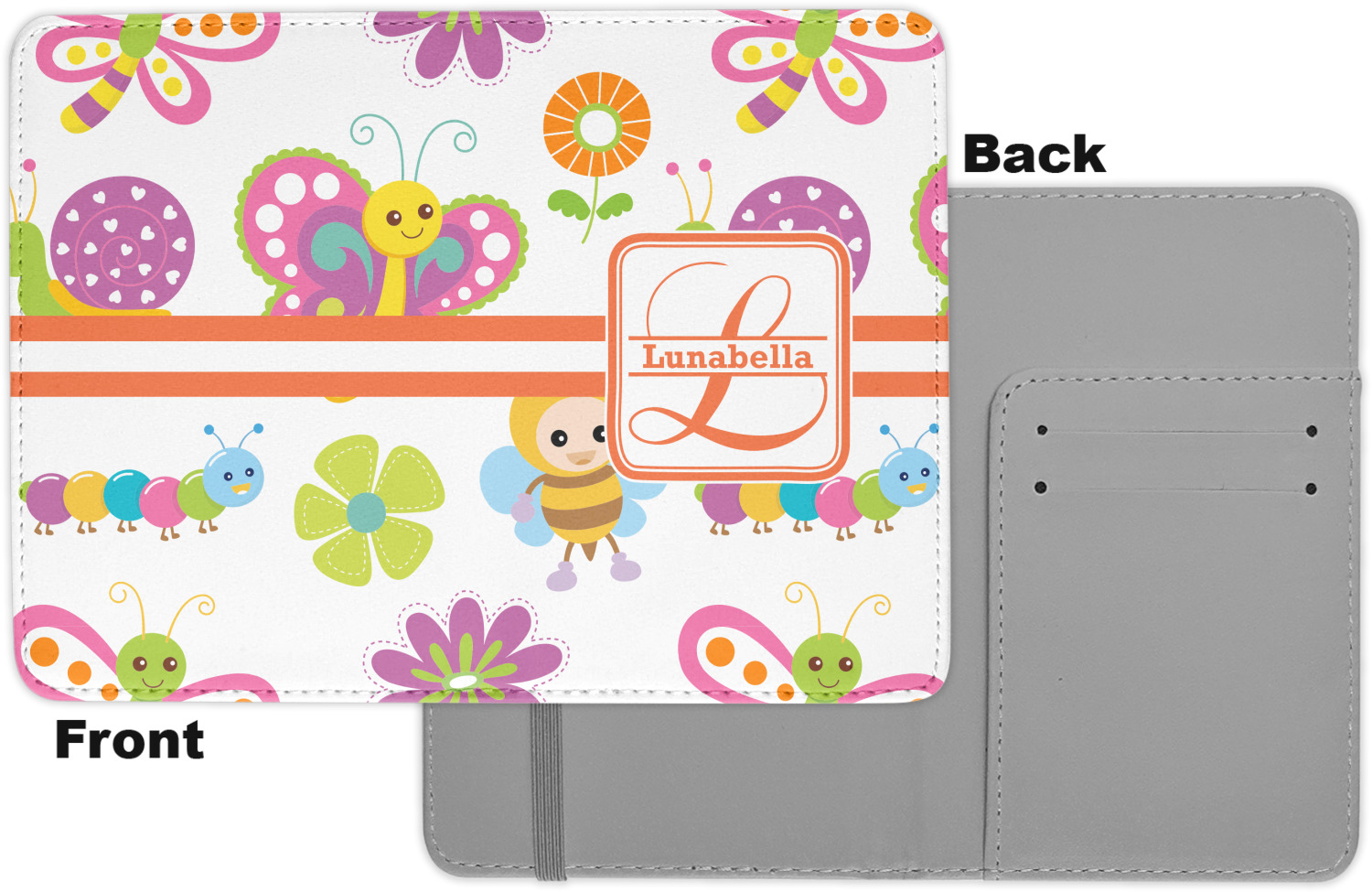 The passport holder has a beautiful inside made of faux leather, while the outside is a smooth slick vinyl like material printed with your personal design.