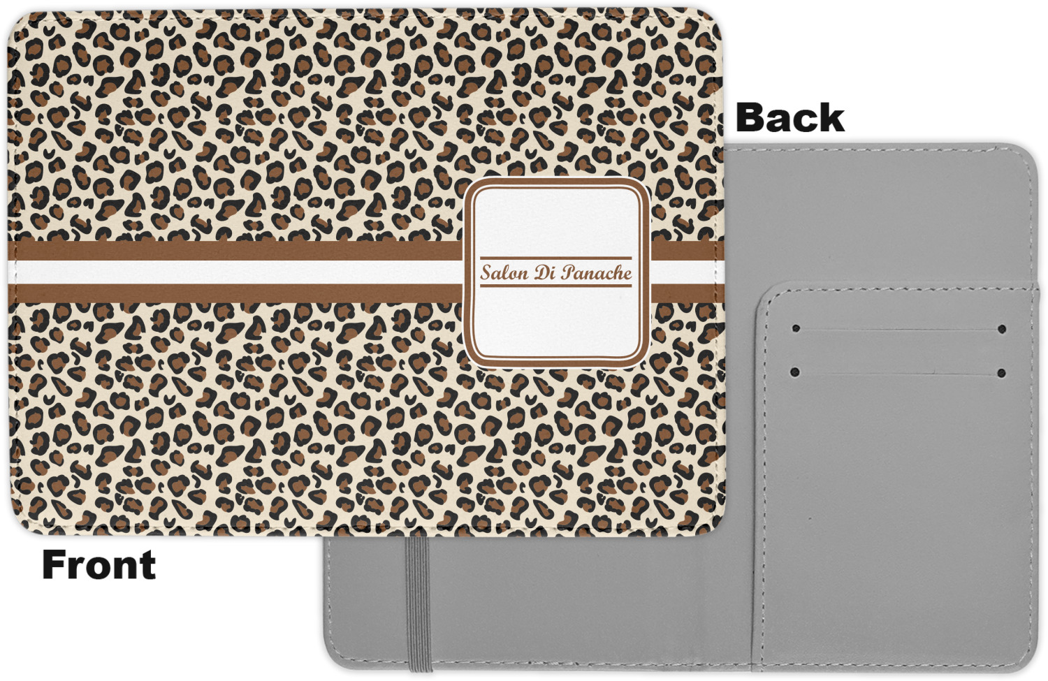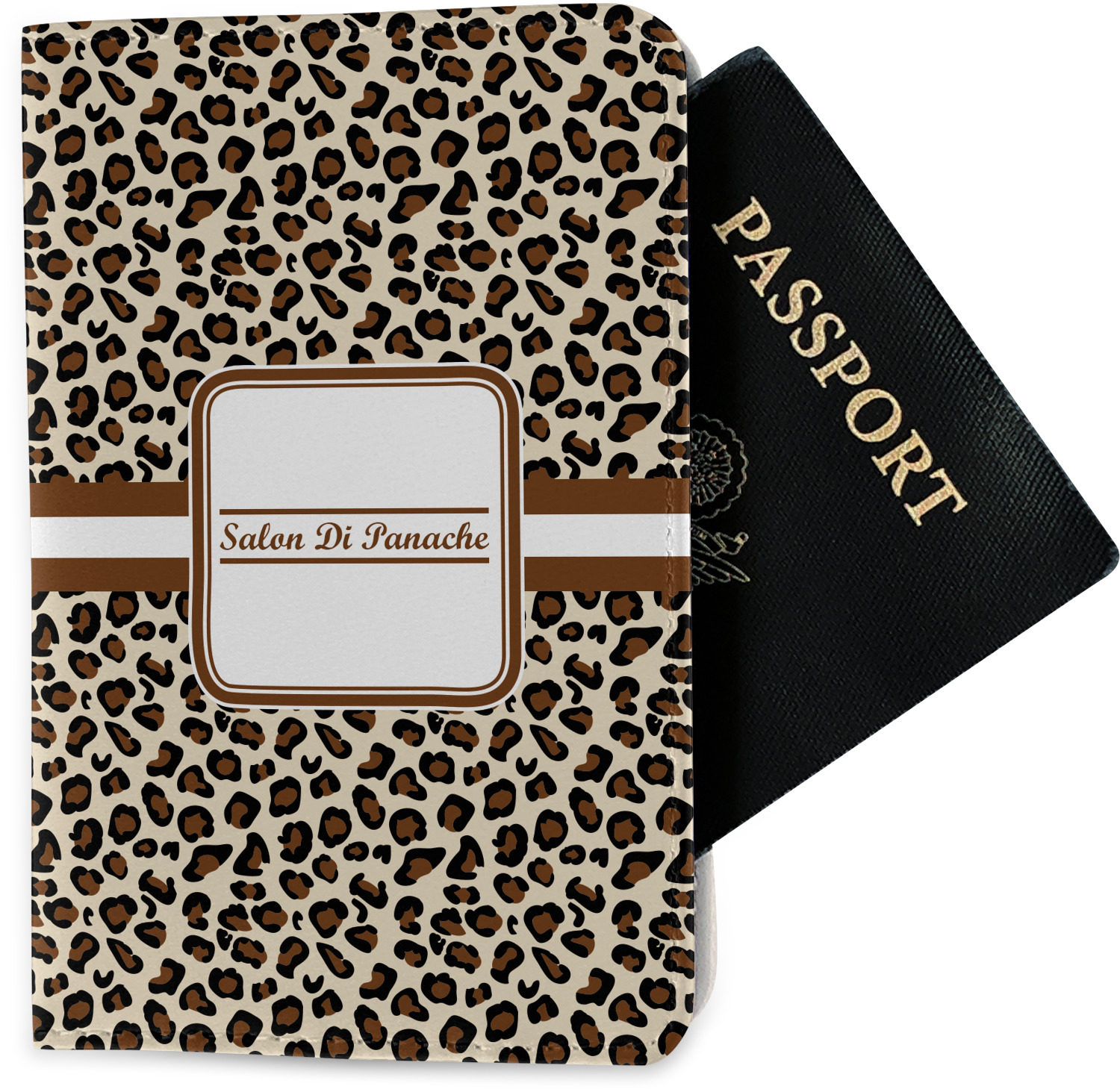 The passport holder has a beautiful inside made of faux leather, while the outside is a smooth slick vinyl like material printed with your personal design.