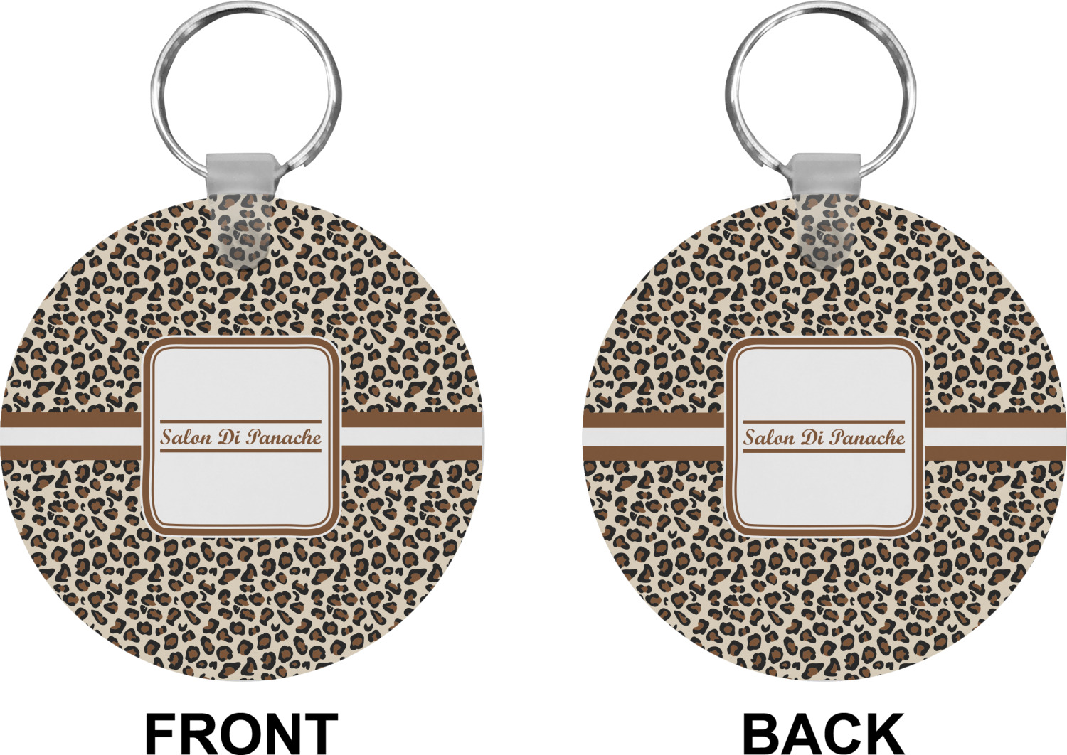 Our personalized keychains attach to the included metal, split key ring with a plastic, removable snap. Since a metal ring is included with your purchase, you have the liberty to keep your keys together on the ring, with or without your unique keychain. We offer this keychain in three different shapes: circle, heart, or diamond. We print your personalized design(s) on both sides of the key chain, and the surface has a glossy, reflective finish that only emphasizes your design. Each keychain is approximately 2.25 by 2.25 inches.