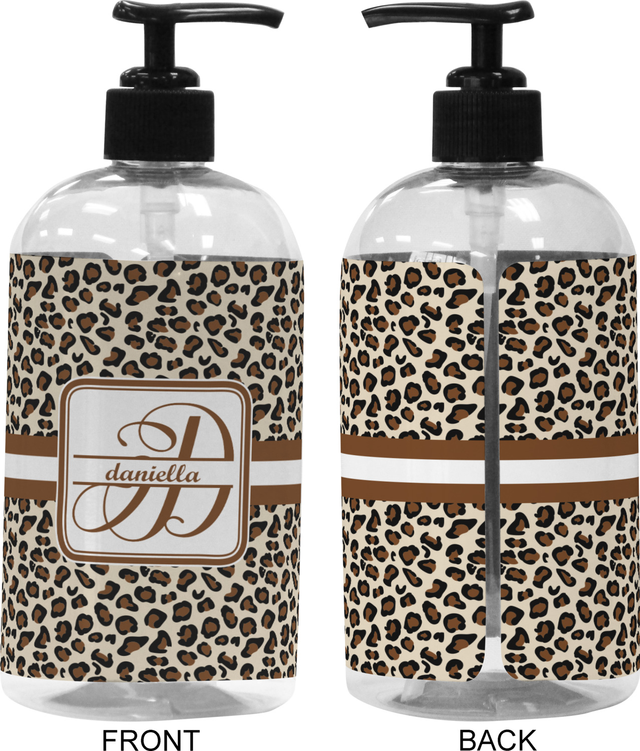 Our bottle dispensers are clear plastic with a black or white nozzle and are available in two sizes - 8 oz (2.25"D x 6"H) and 16 oz (2.5"D x 7"H) and can hold a variety of liquids. The large size (16 oz) is perfect for shampoo, conditioner, body soap / lotion while the smaller size (8 oz) is perfect for hand soap, lotion or face cleanser.