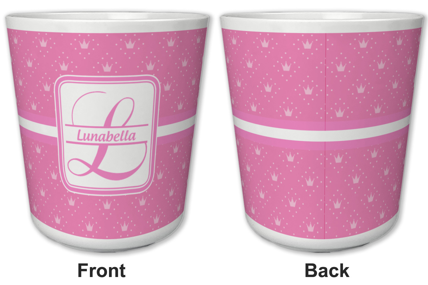 Made from a durable plastic, these tumbler cups are strong enough to withstand daily use and are perfect for young children. Each of these personalized plastic cups holds 6 ounces and measure at approximately 3" x 3" x 3.25". Place them in the bathroom as a rinsing cup, or give them to your kids during mealtimes. These 6 oz. plastic cups are BPA free, microwave and dishwasher safe, for your convenience. Your personalized design is displayed across the entire outside of this cup, while the inside is white in color to make your customization really stand out.