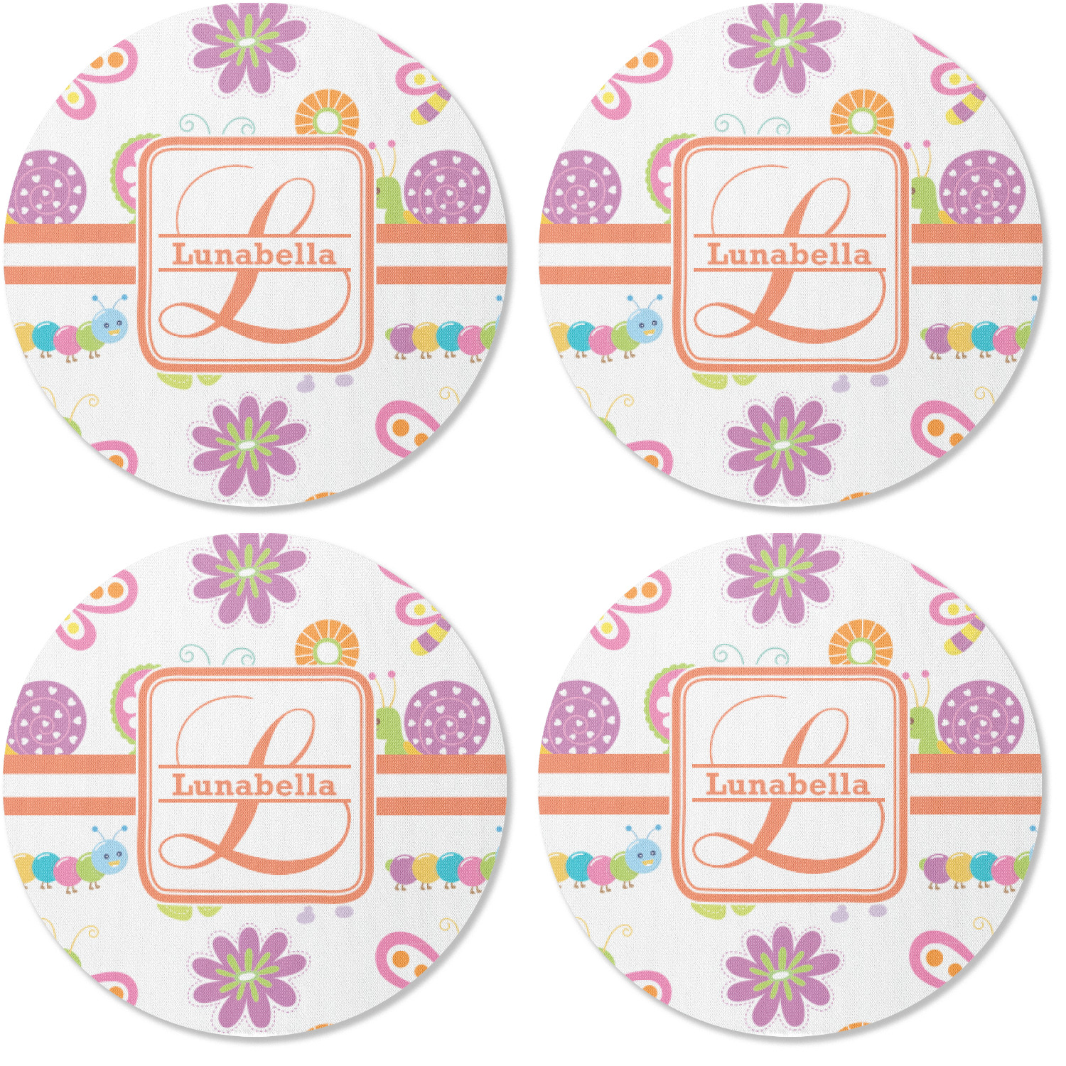 These drink coasters have a smooth, polyester top and a textured, rubber backing on its bottom. The non-slip rubber backing underneath works to keep any spills at bay. At 4 by 4 by 0.25 inches thick, these custom coasters are a suitable size for most drinkware. Your personalization is displayed atop the face of the cup coaster. We sell these rubber coasters in two different shapes: square and round. You can buy each shape as singulars or as a set of 4.