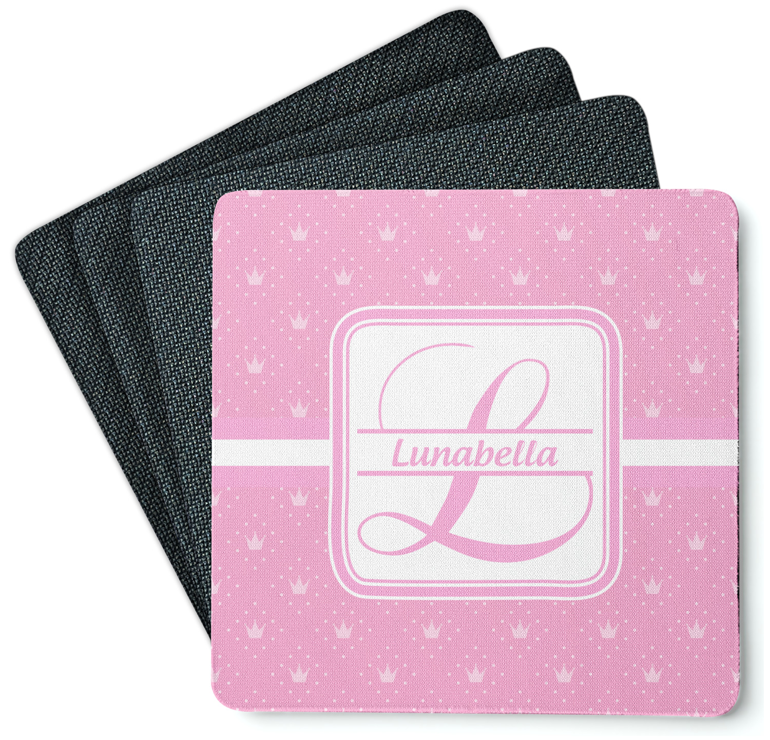 These drink coasters have a smooth, polyester top and a textured, rubber backing on its bottom. The non-slip rubber backing underneath works to keep any spills at bay. At 4 by 4 by 0.25 inches thick, these custom coasters are a suitable size for most drinkware. Your personalization is displayed atop the face of the cup coaster. We sell these rubber coasters in two different shapes: square and round. You can buy each shape as singulars or as a set of 4.