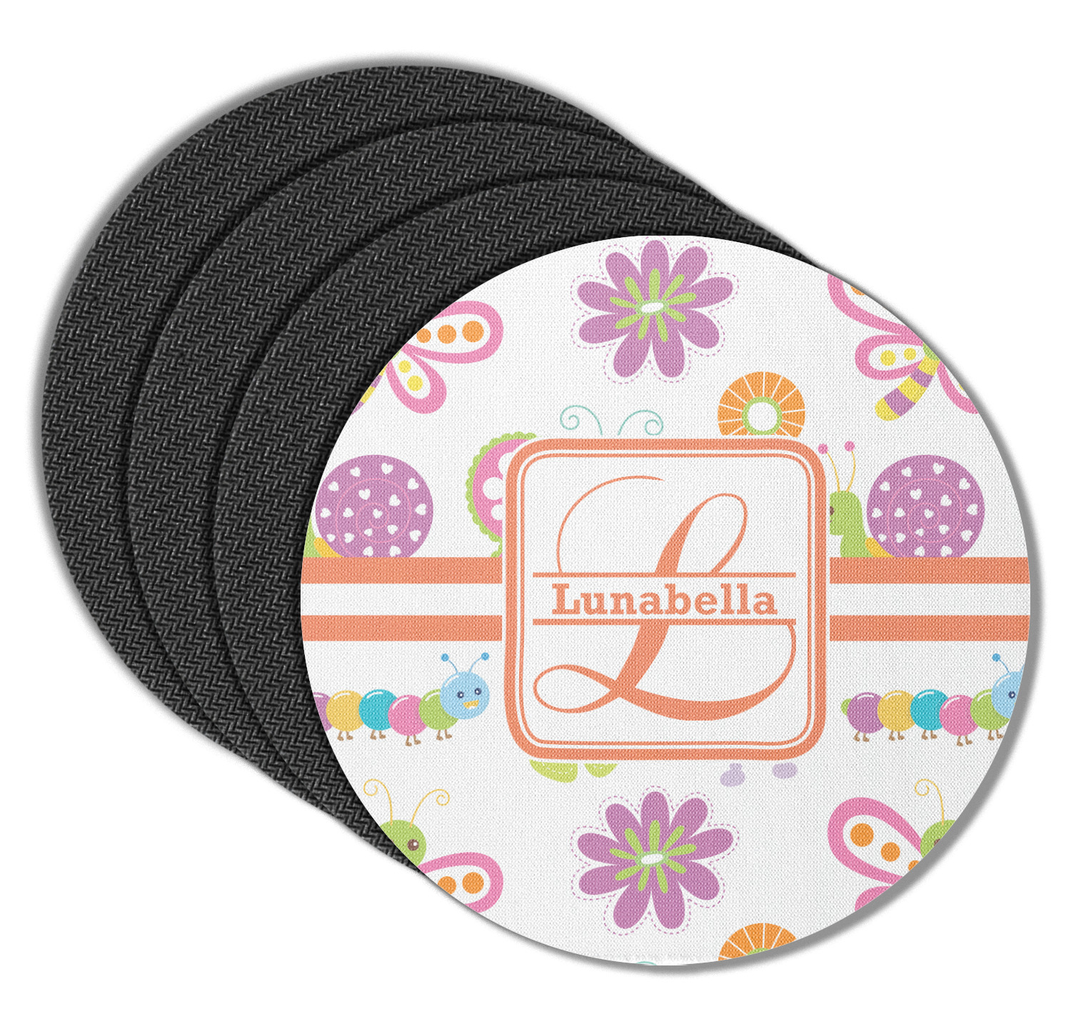 These drink coasters have a smooth, polyester top and a textured, rubber backing on its bottom. The non-slip rubber backing underneath works to keep any spills at bay. At 4 by 4 by 0.25 inches thick, these custom coasters are a suitable size for most drinkware. Your personalization is displayed atop the face of the cup coaster. We sell these rubber coasters in two different shapes: square and round. You can buy each shape as singulars or as a set of 4.