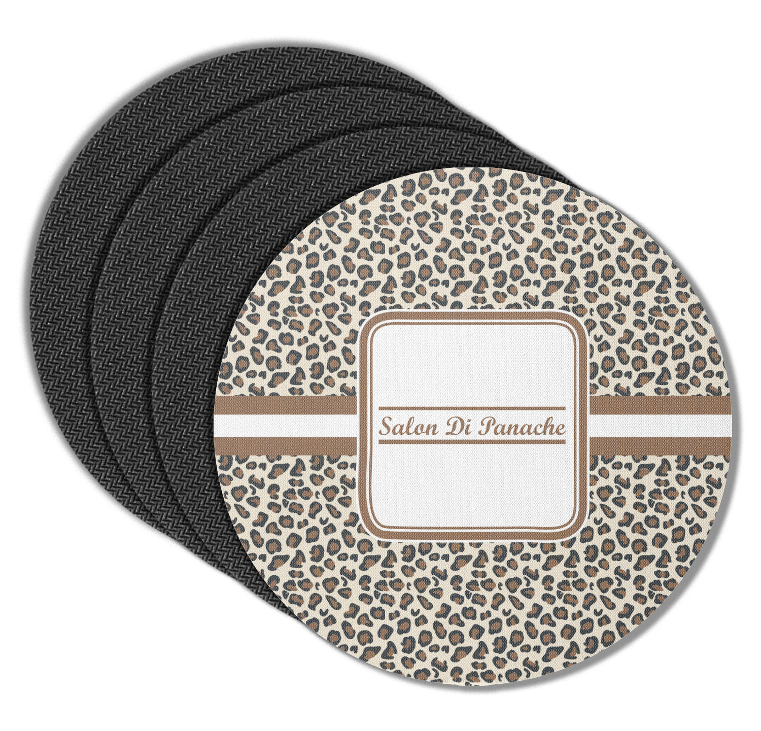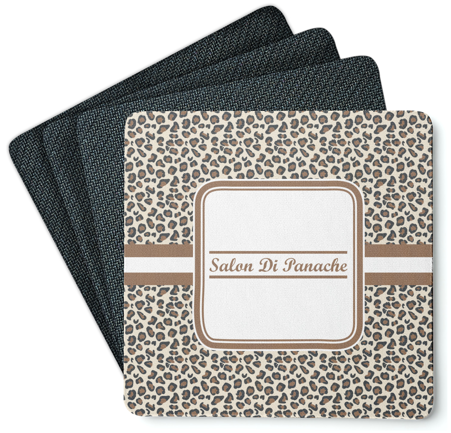 These drink coasters have a smooth, polyester top and a textured, rubber backing on its bottom. The non-slip rubber backing underneath works to keep any spills at bay. At 4 by 4 by 0.25 inches thick, these custom coasters are a suitable size for most drinkware. Your personalization is displayed atop the face of the cup coaster. We sell these rubber coasters in two different shapes: square and round. You can buy each shape as singulars or as a set of 4.