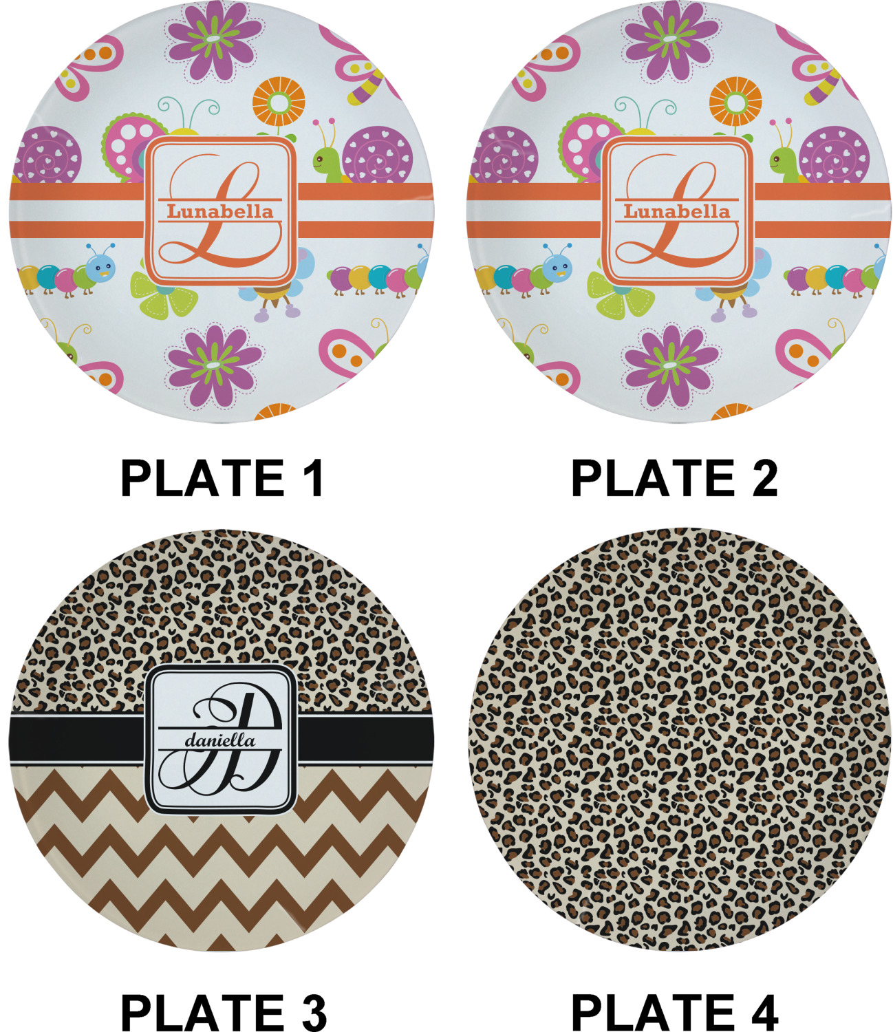 With a of designs and patterns, these plates are completely customizable. Choose a foodie design, complete with red-hot chili peppers, or go classic with stripes or plaid. Include your monogram or family name to make sure these plates never get lost at parties!