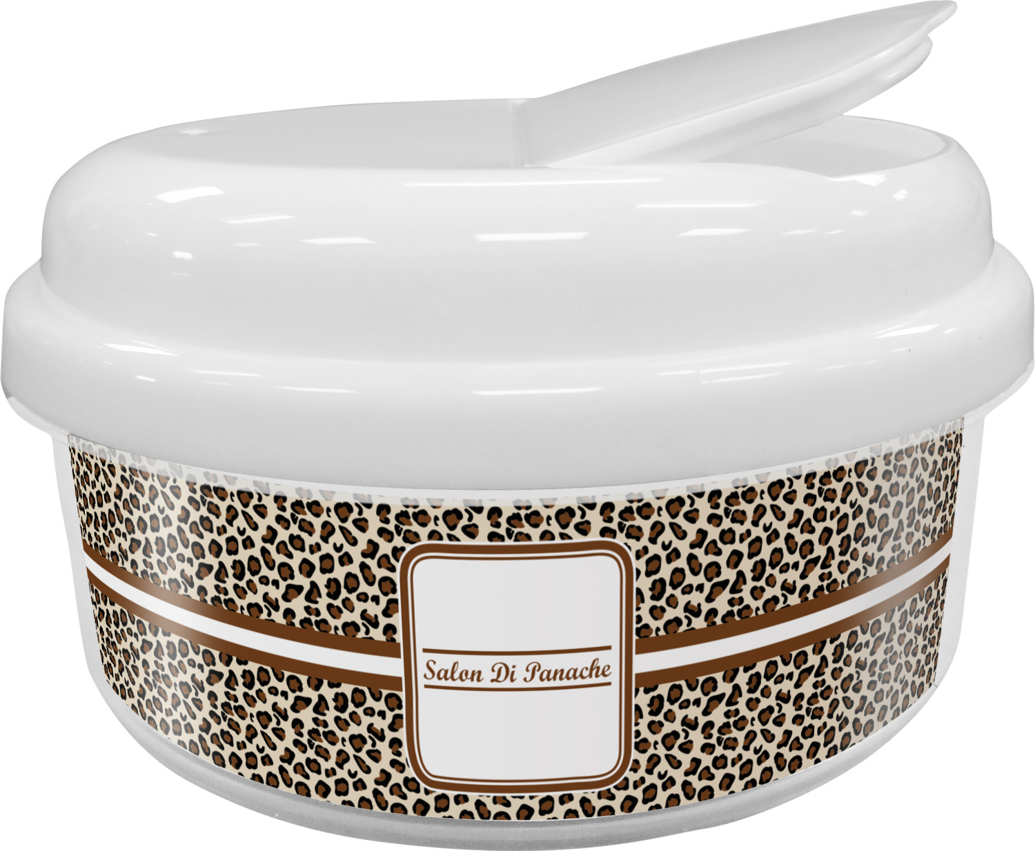 As always, this product is free of any harmful BPA. We print your customization on an insert on the sides of the container, while the top and bottom is a pristine white.