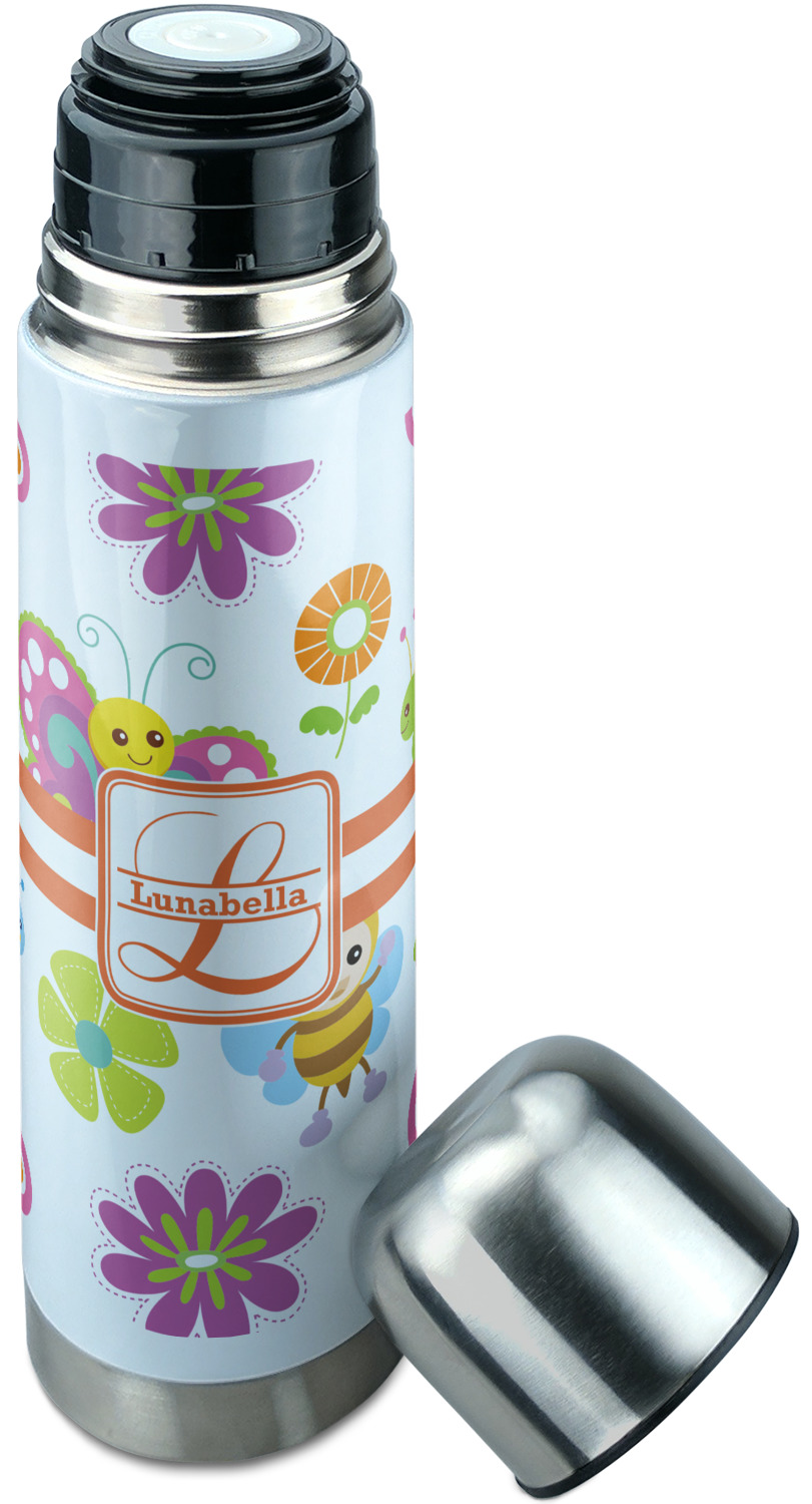 Manufactured from stainless steel, this thermos is built durably and double-walled insulated to preserve the temperature of your drink for hours. It also features a screw off lid that is made to also function as a small cup. Upon unscrewing this part of the thermos bottle, a pop-open, pour feature emerges. This feature allows you to slowly pour your beverage into your lid, ensuring a steady, controlled pour into your lid or other cup. With a capacity of 25 ounces, these large thermoses can hold several servings of your favorite beverage. Your customization is displayed all around the bottle with bright, vibrant color.