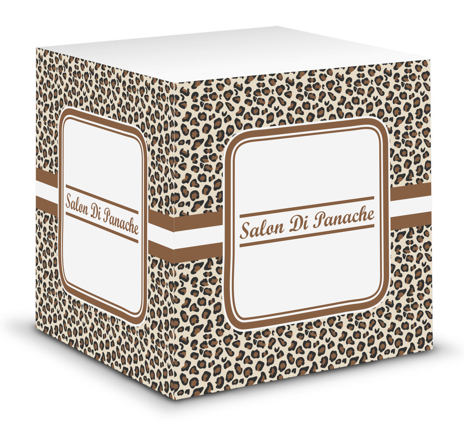 This note cube features 700 sheets of matte, white paper. Each sheet measures at 3.5 by 3.5 inches and has an adhesive strip at its top. Your personalized design is displayed on all four edges of the sticky pad.