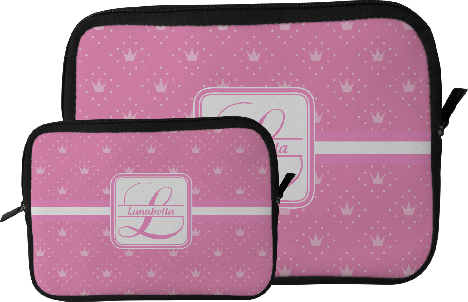 These tablet covers are fabricated from a water-resistant neoprene, and feature a zipper at its top for easy access to your device. The supple, cushioned nature of the neoprene will protect your tablet from the mishaps of daily life. Your personalized design is printed on the front of the I-Pad case, while the remaining sides are black in color. We provide this case in two sizes, in order to best accommodate your device. Our smaller size can fit a tablet with an 11 inch screen, while our larger sleeve is better suited for devices with approximately a 13 inch screen.